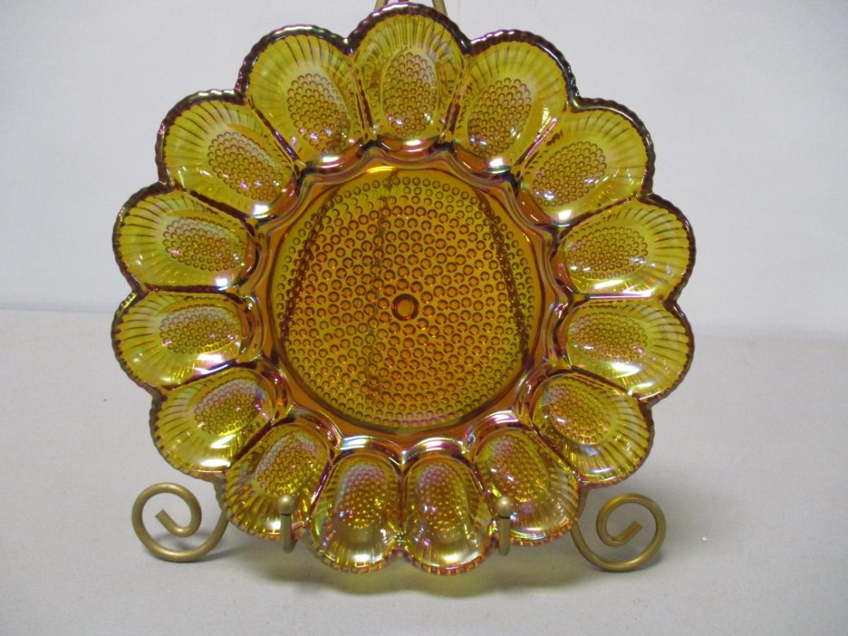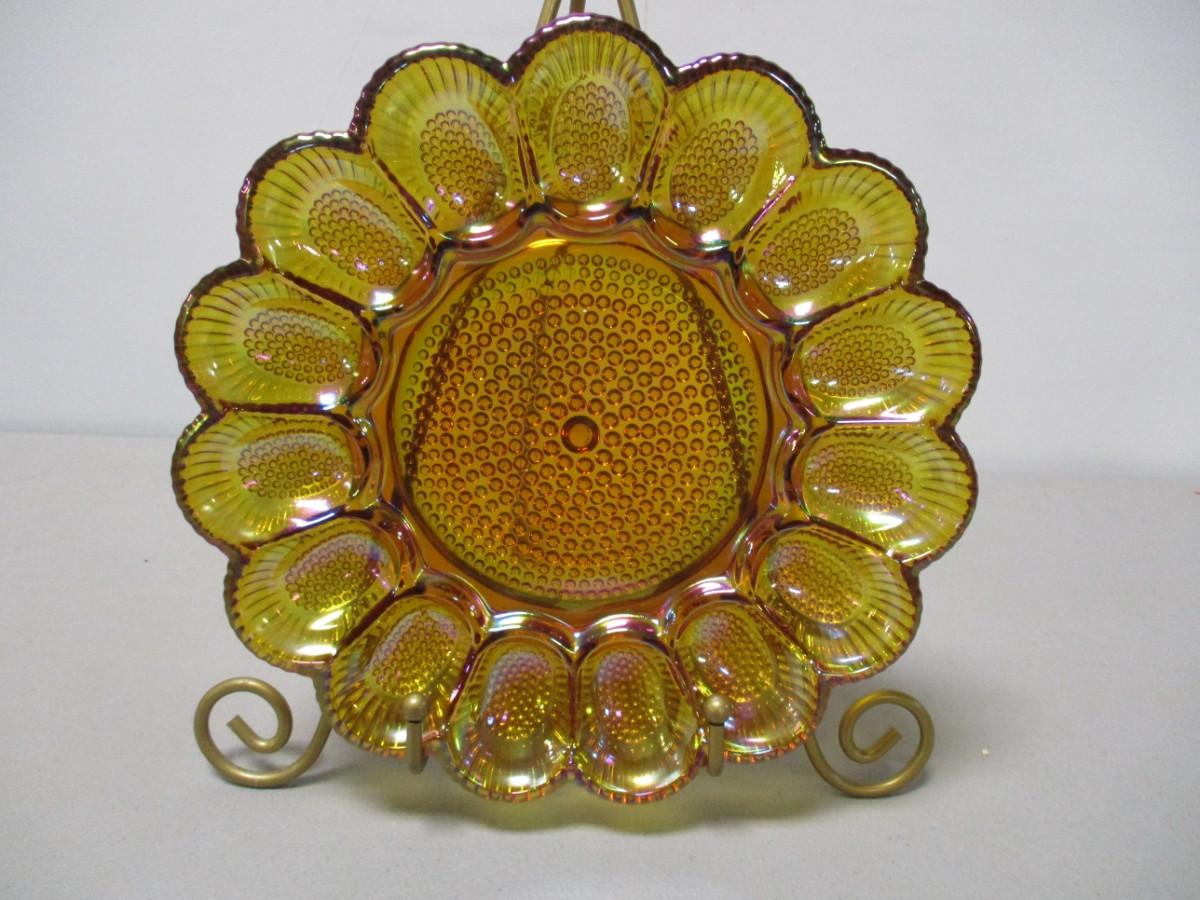 Vintage Indiana Amber Glass Deviled Egg/Relish Plate