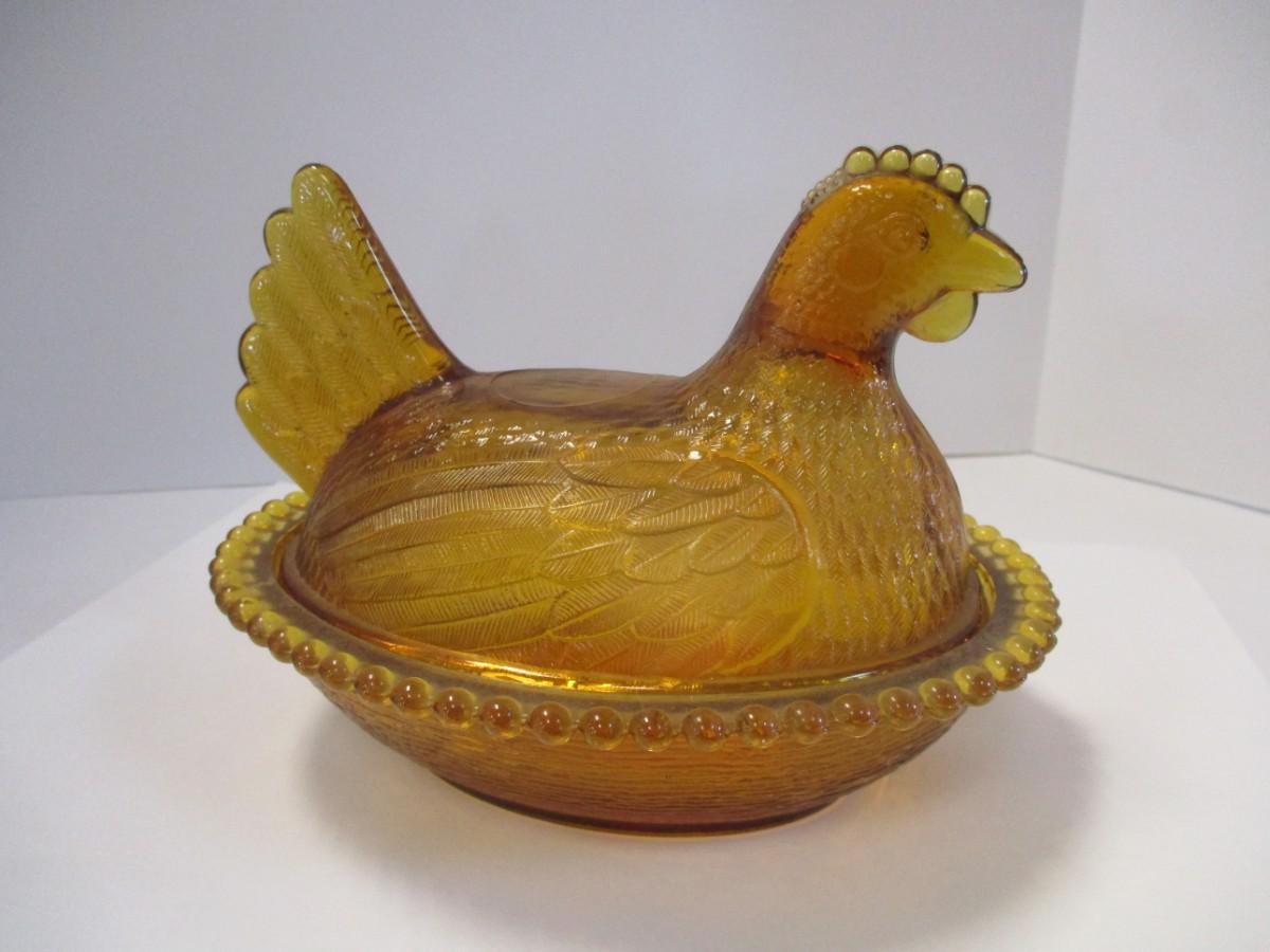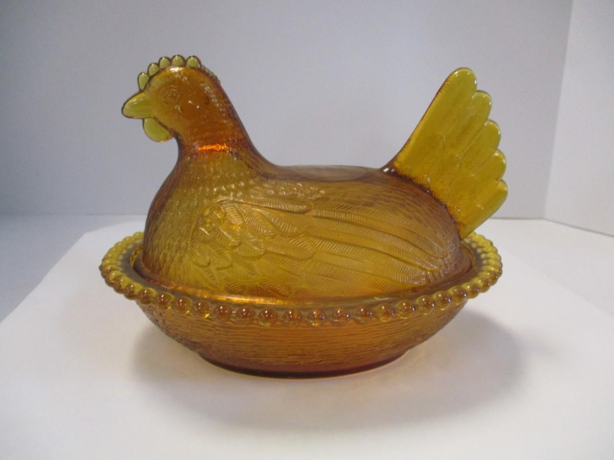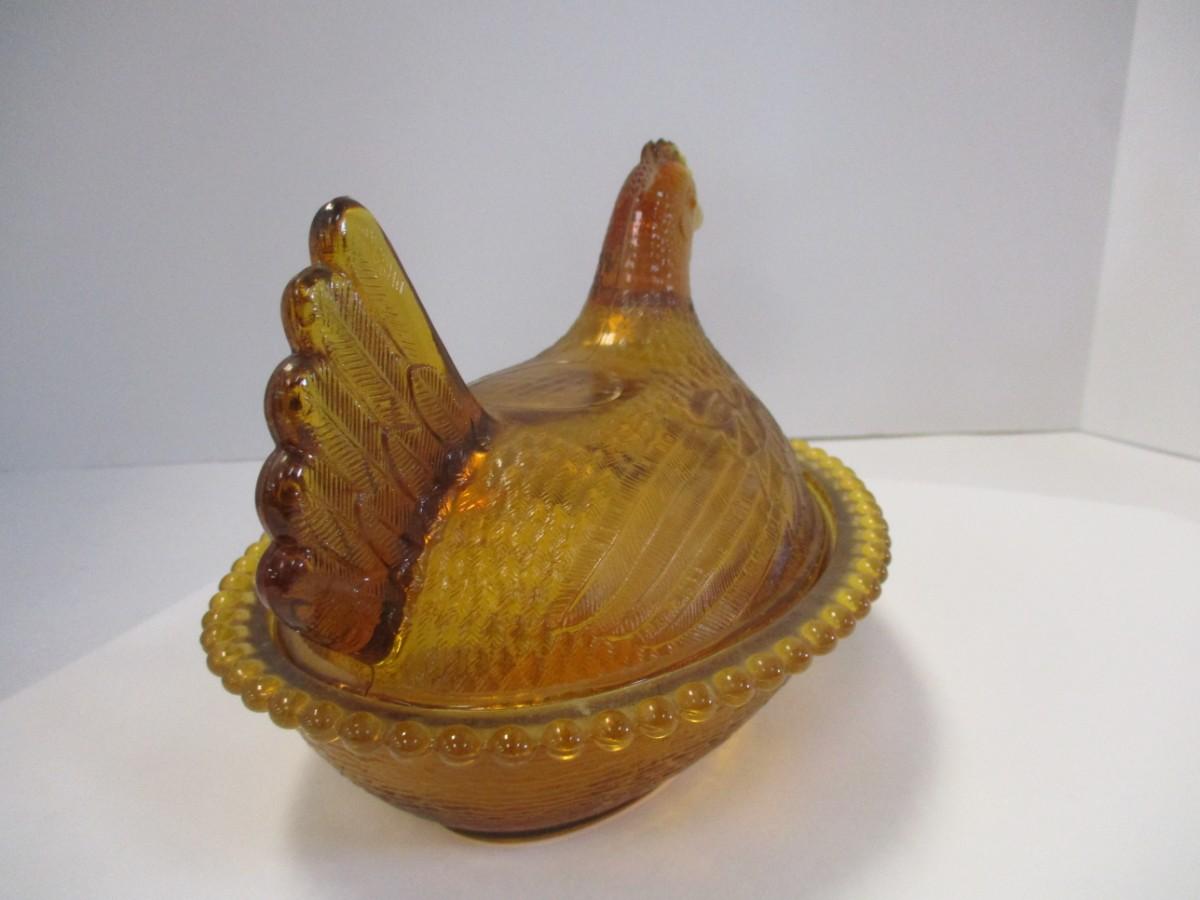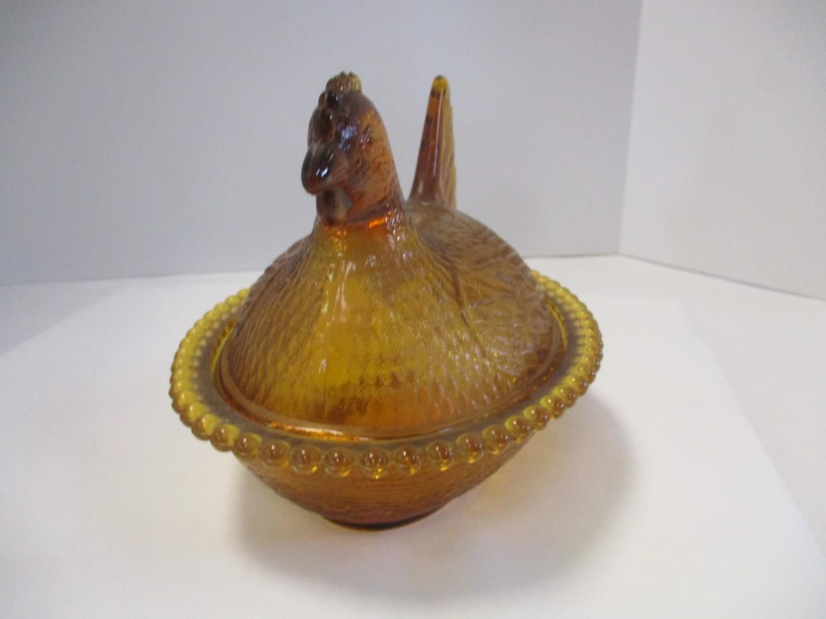Vintage Indiana Glass Amber Brown Hen On Nest Covered Candy Dish