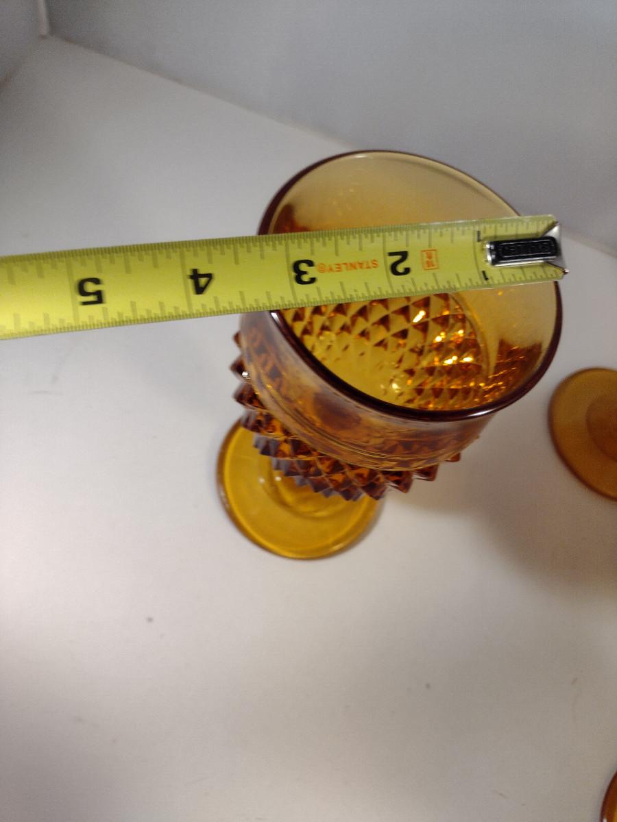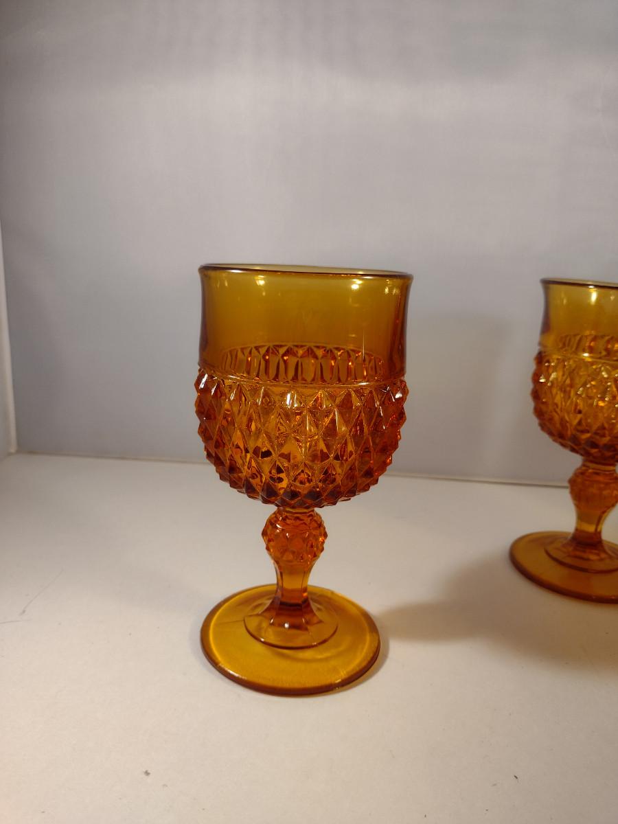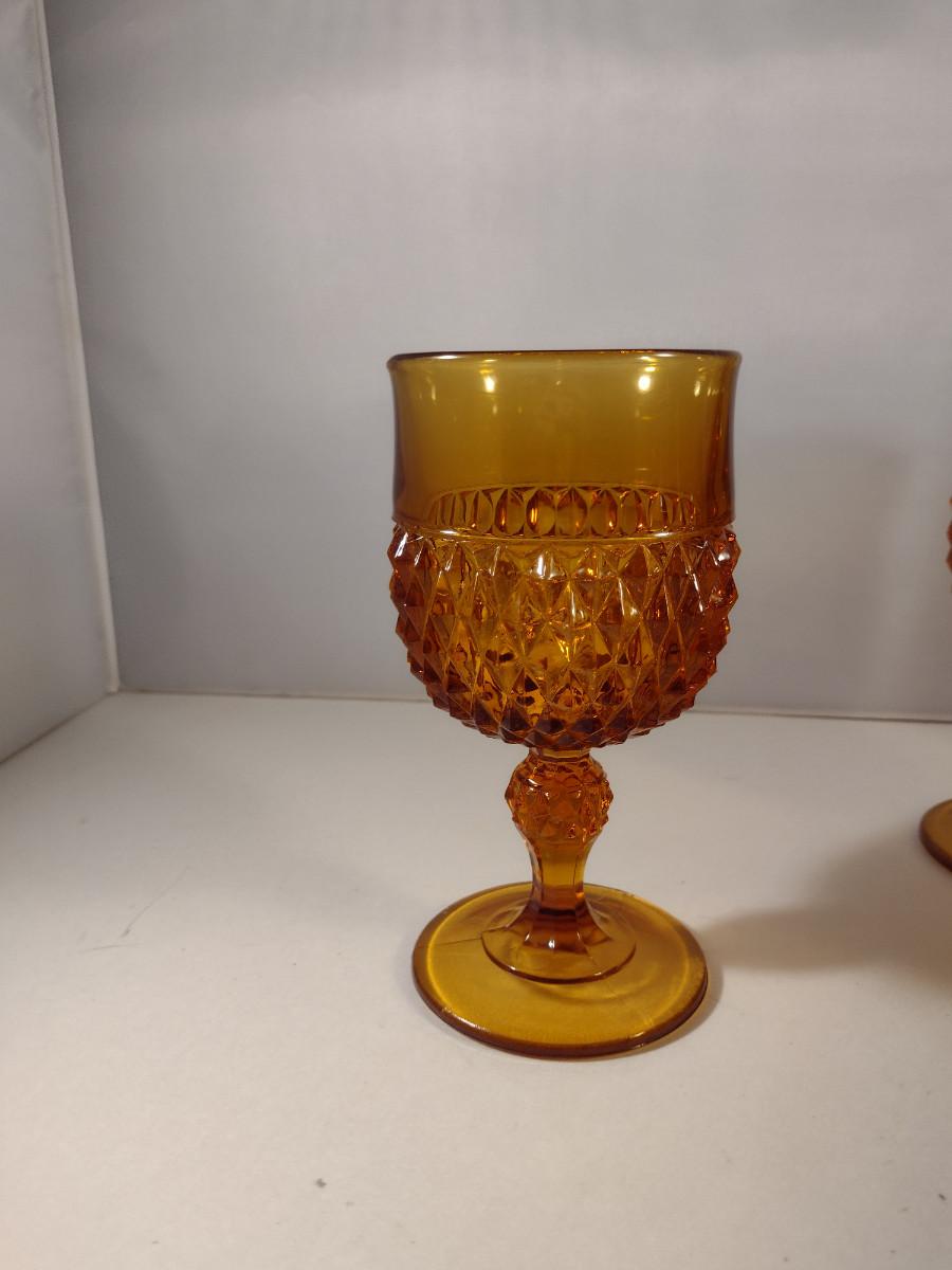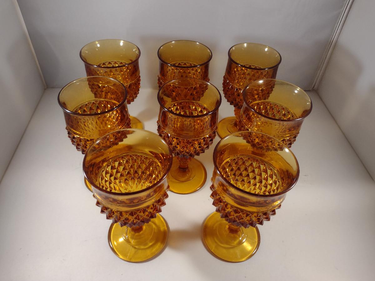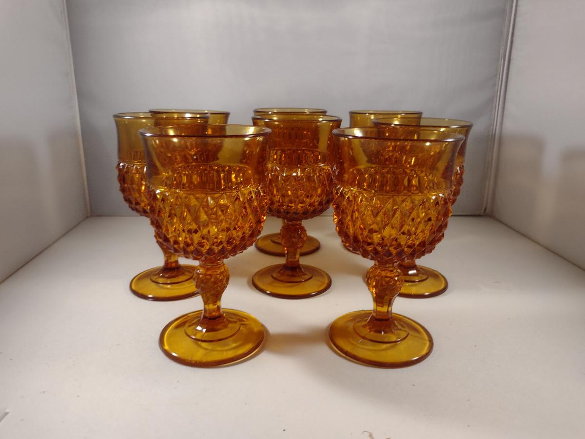 Vintage Indiana Glass Amber Diamond Point Wine/Water Goblets- Eight Pieces