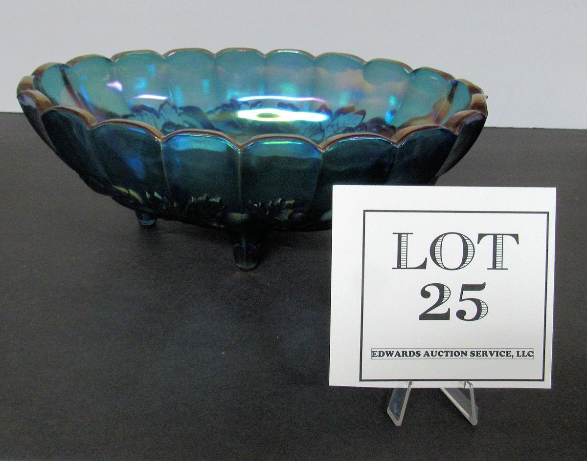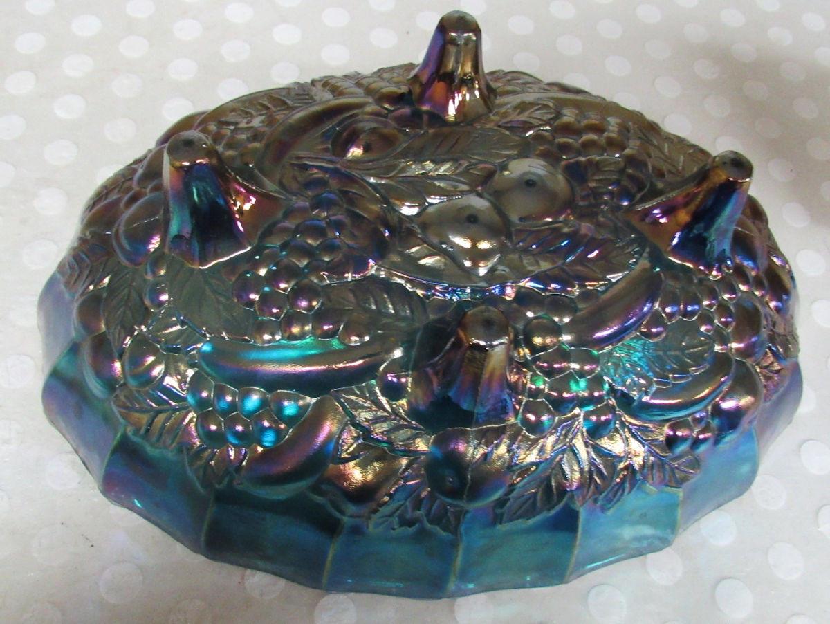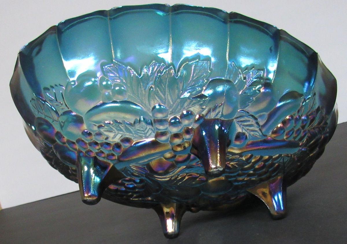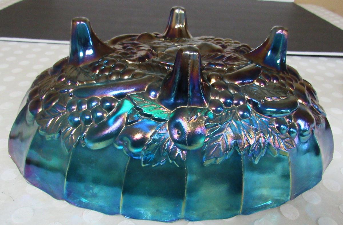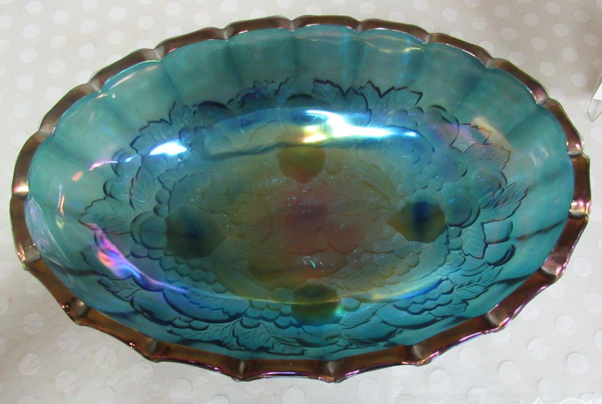 Vintage Indiana Glass Blue Carnival Glass Large Oval Bowl Grapes Pattern