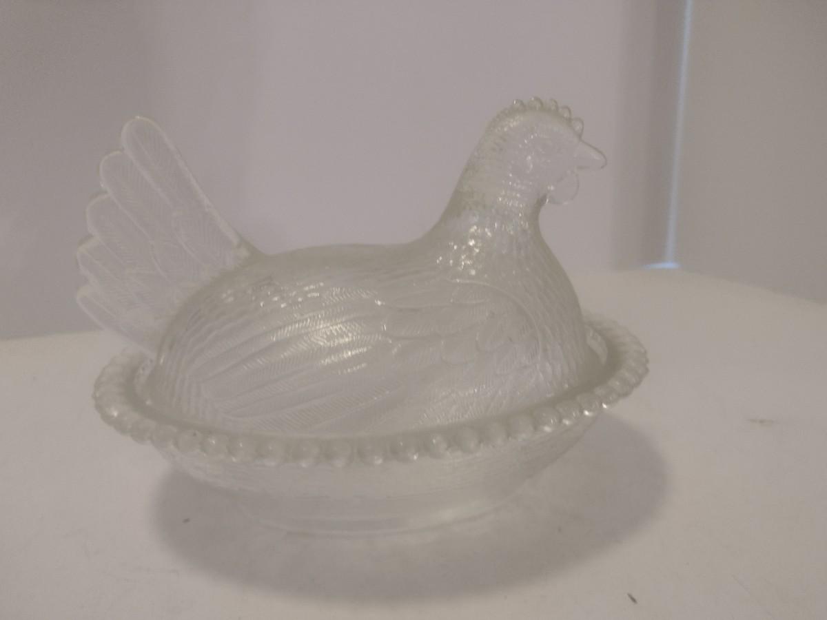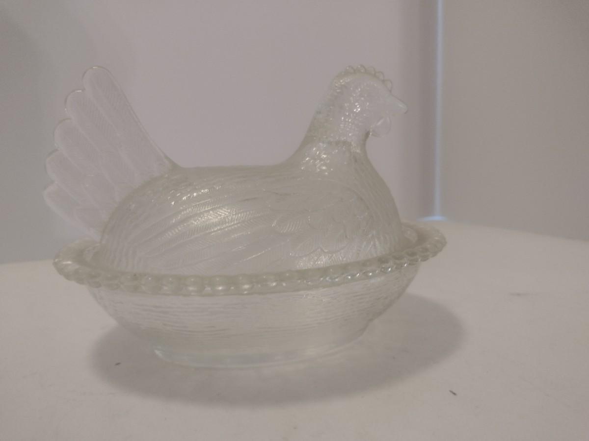 Vintage Indiana Glass Clear Nesting Hen Candy Dish
