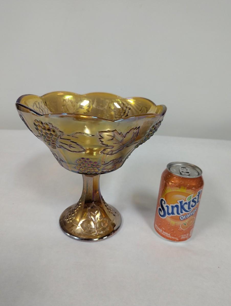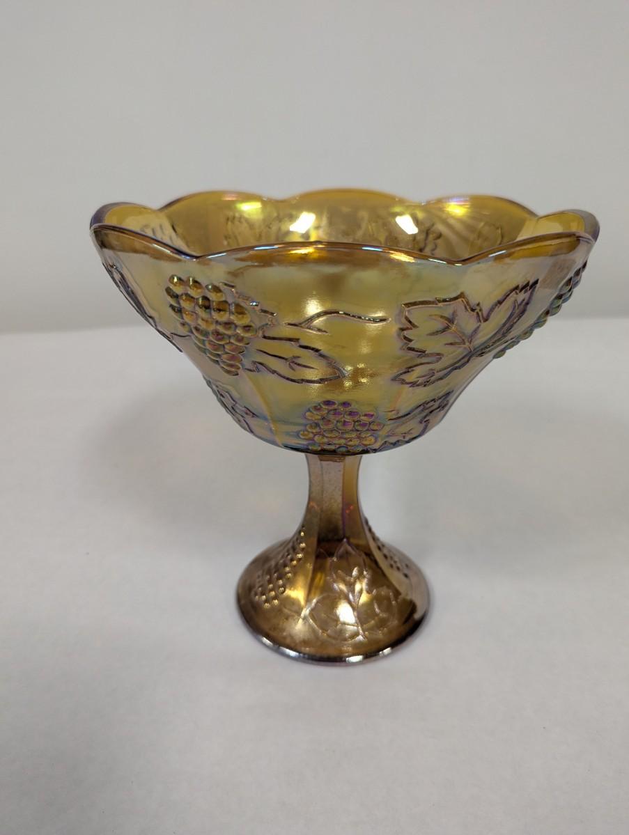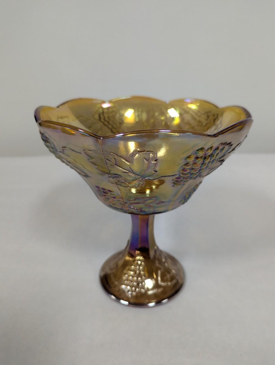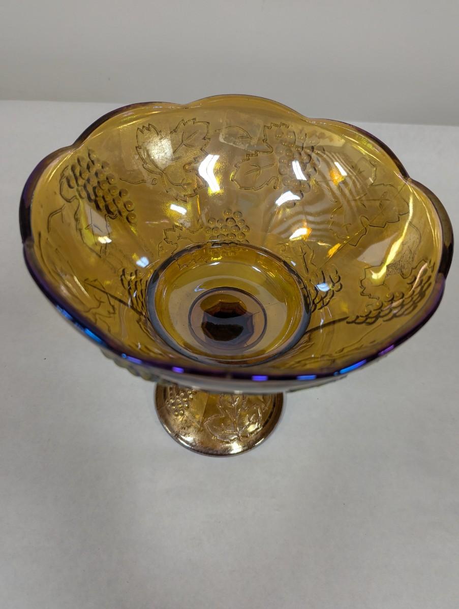 Vintage Indiana Glass Harvest Grape & Leaf Gold Fruit Bowl