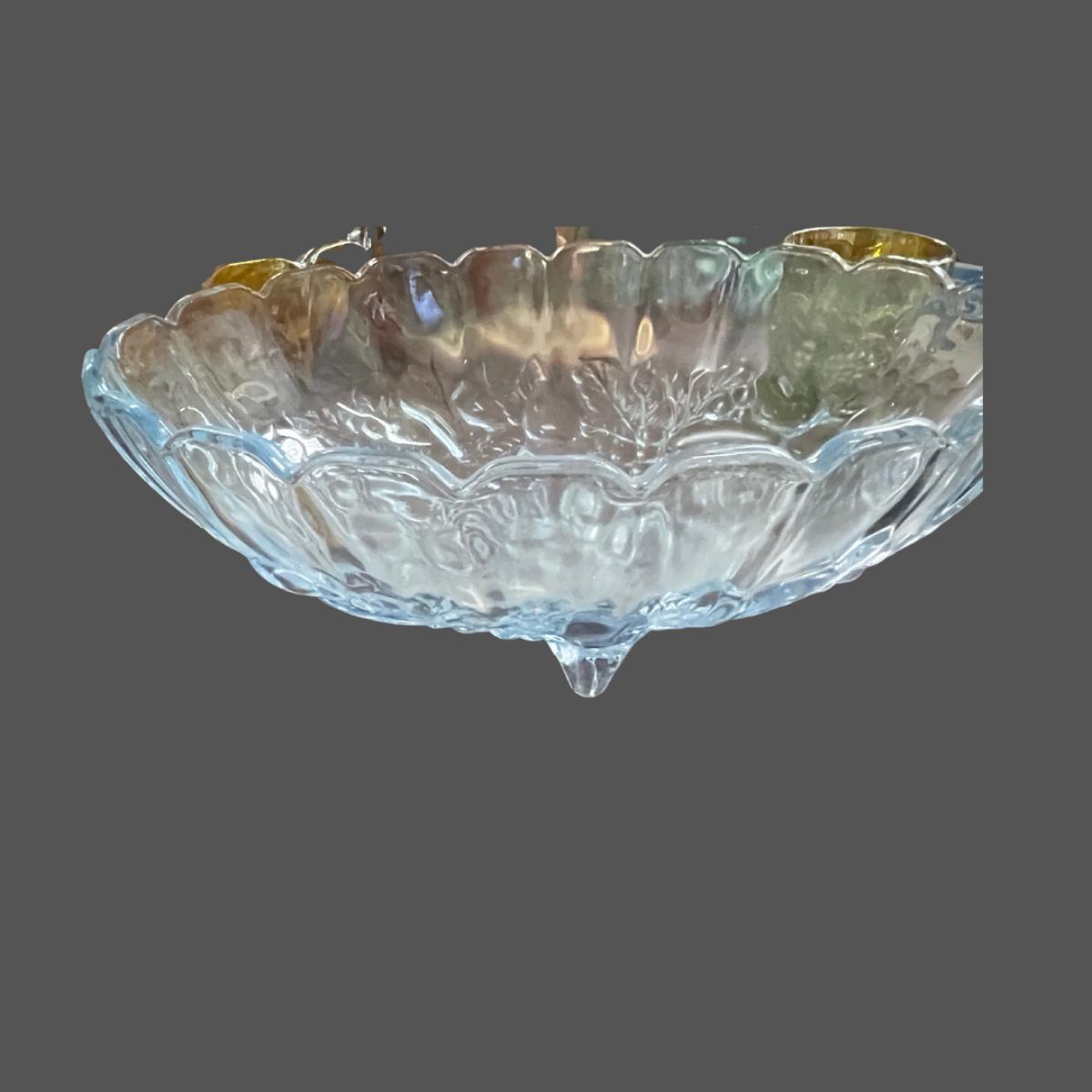 This is a clear glass footed fruit bowl. Measures 12 x 4