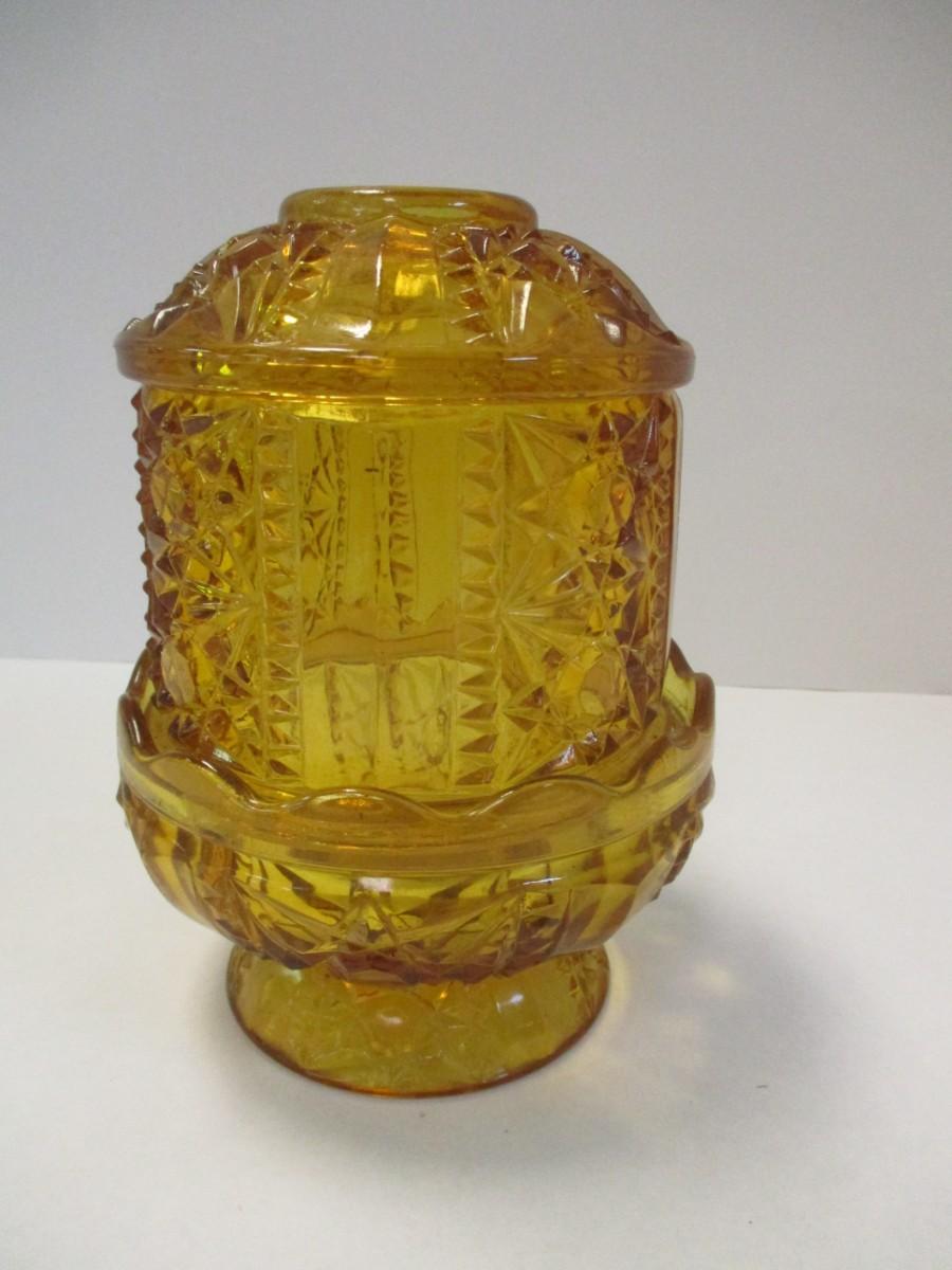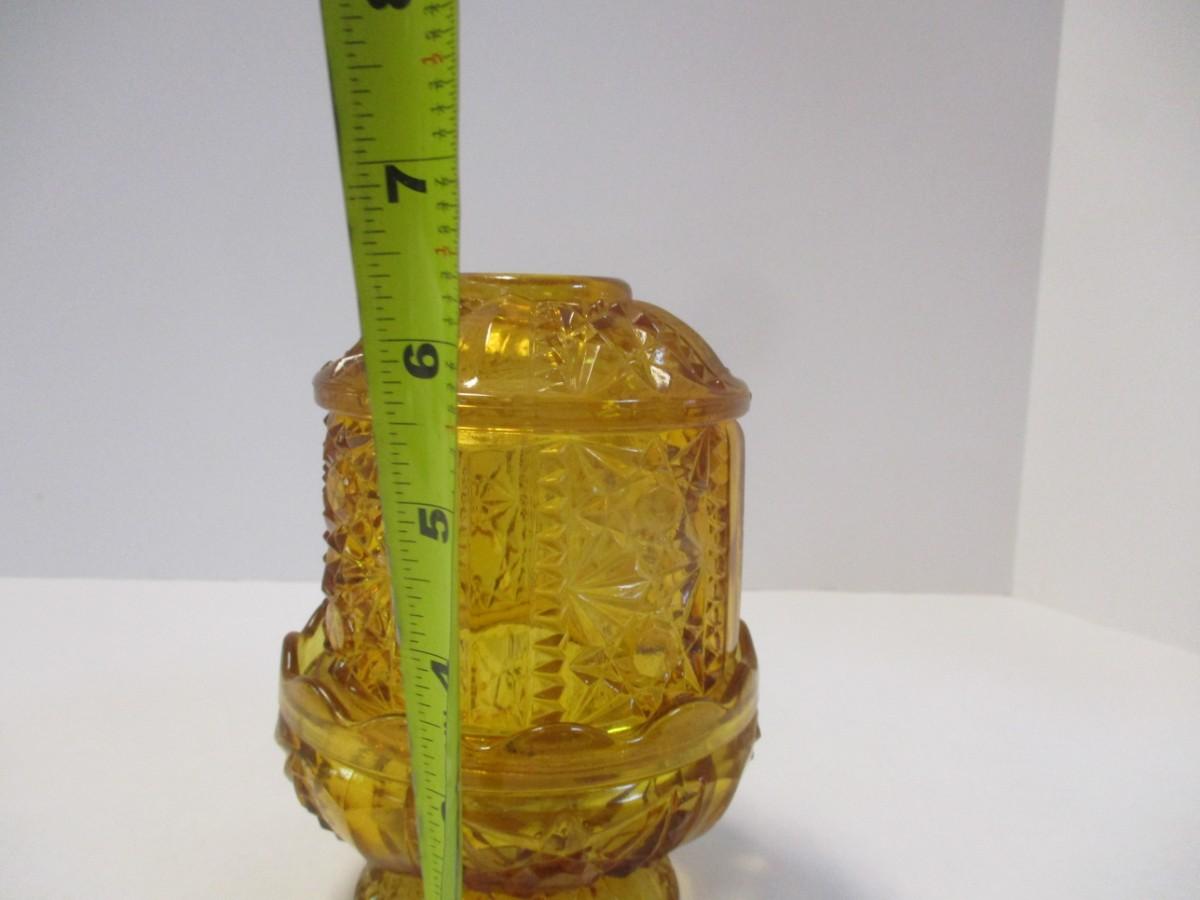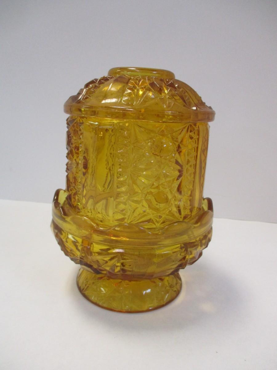Vintage Indiana Glass Stars & Bars Amber Gold Fairy Lamp Candle Light