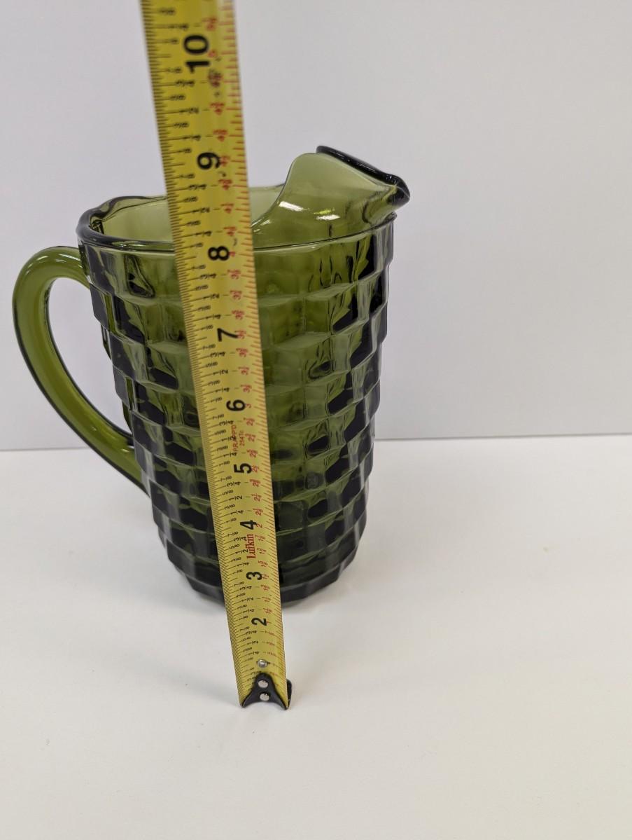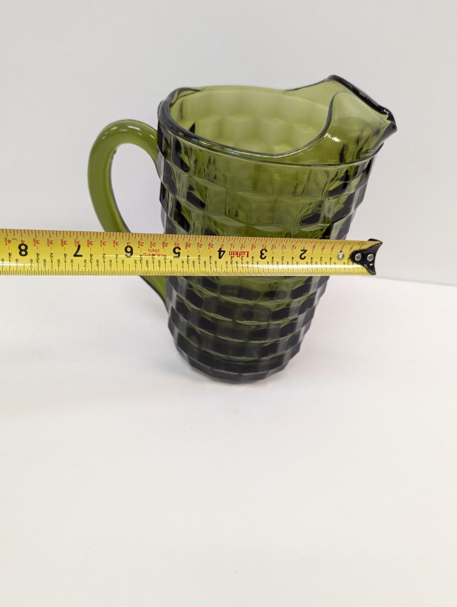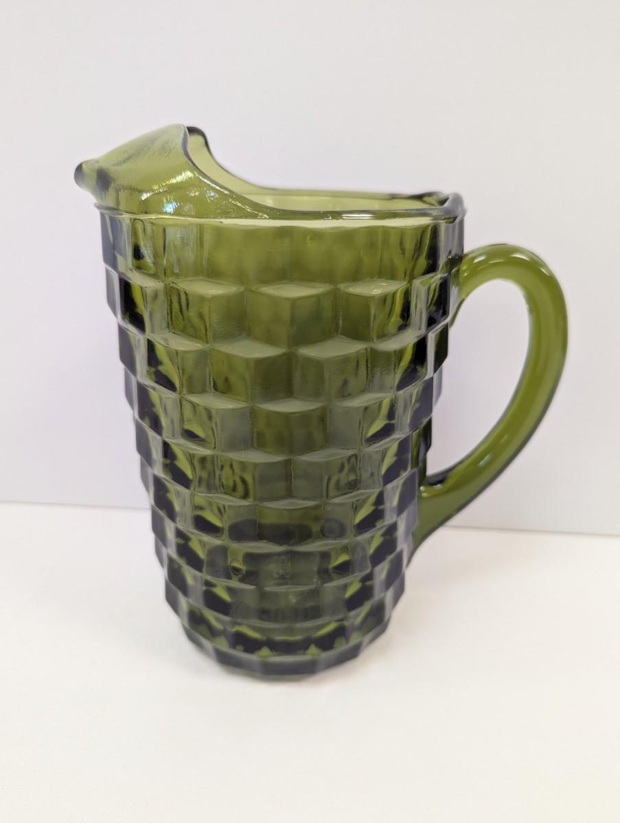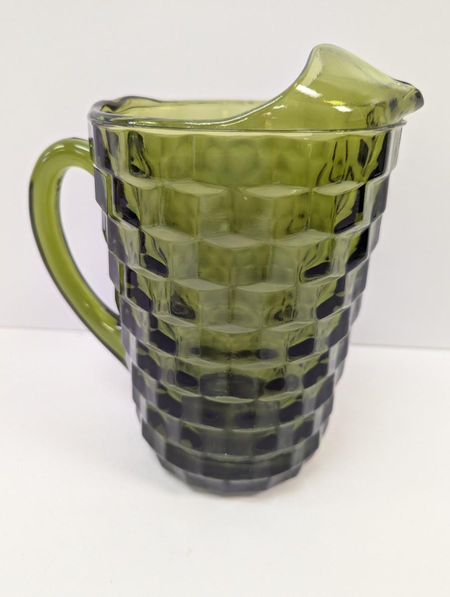 Vintage Indiana Glass Whitehall Olive Avocado Cube Pattern Pitcher Choice 1