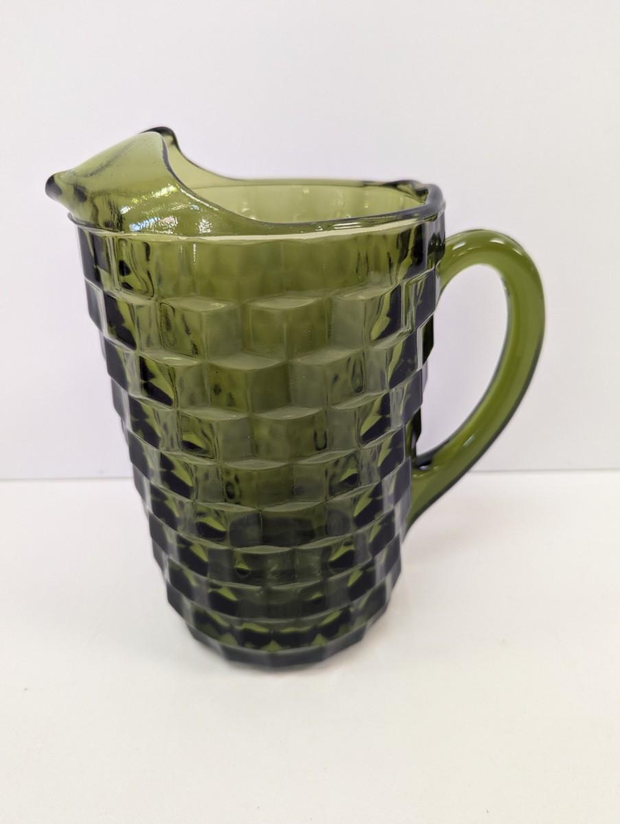 Vintage Indiana Glass Whitehall Olive Avocado Cube Pattern Pitcher Choice 2