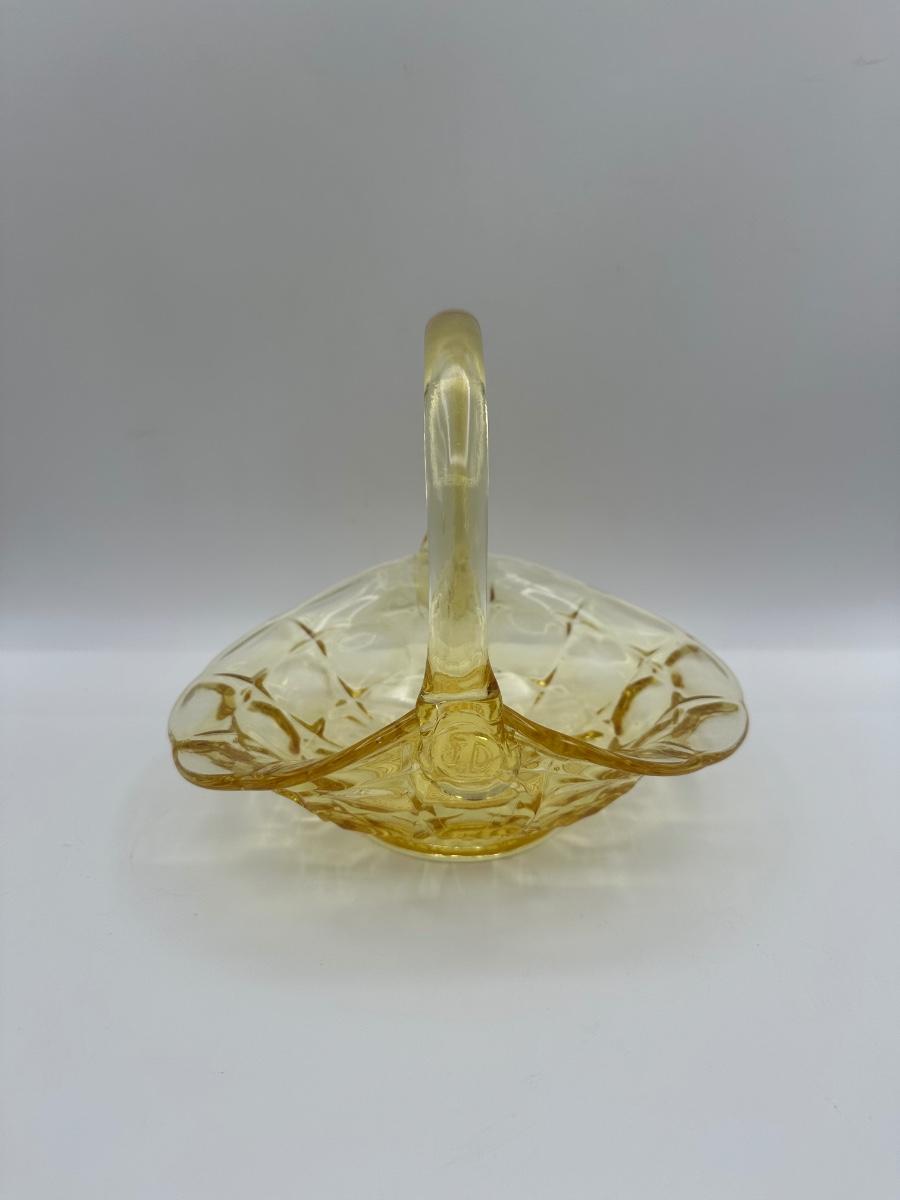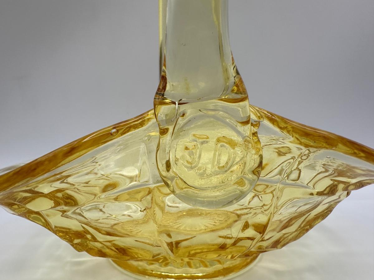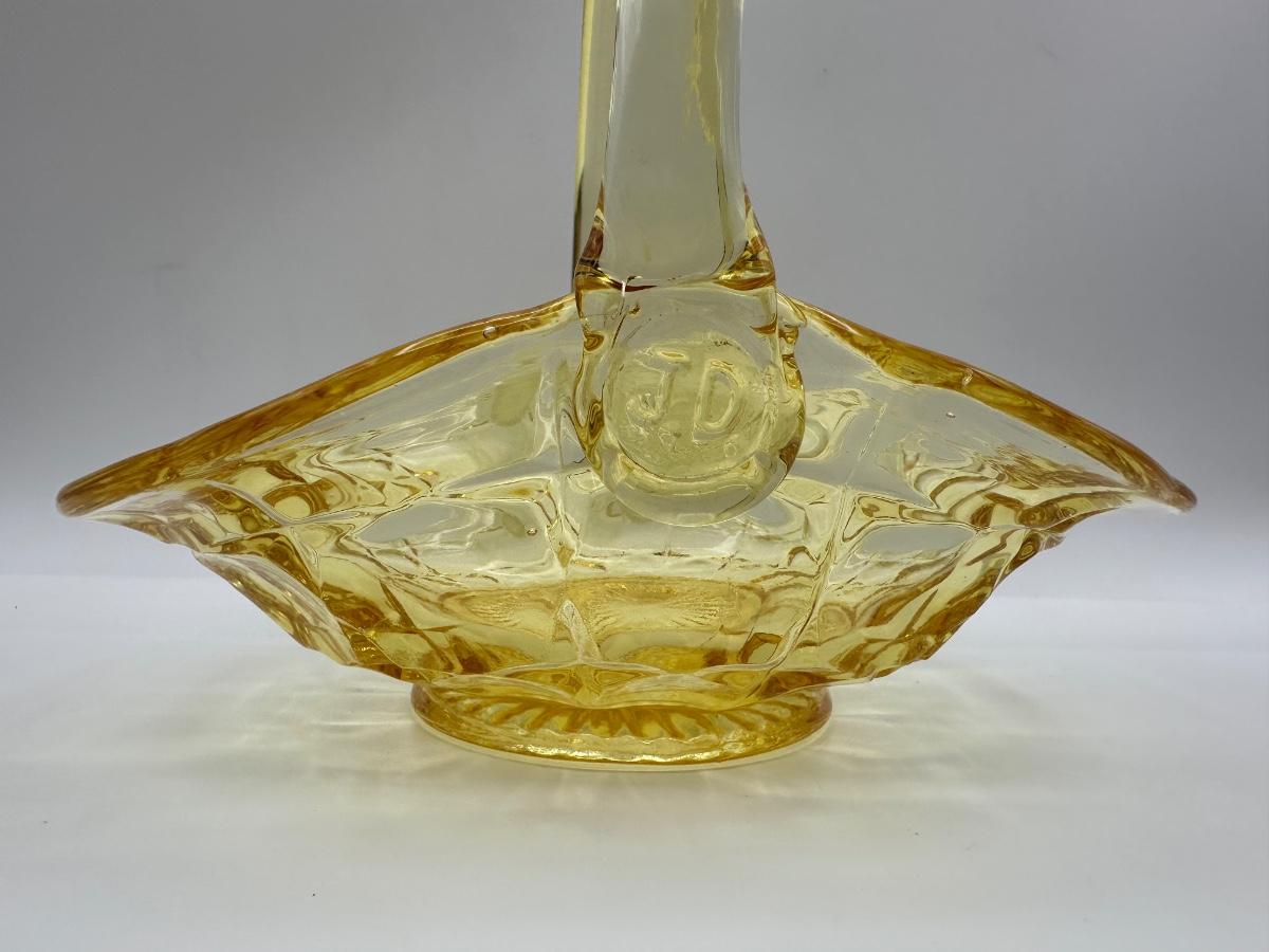 Vintage Indiana Glass Yellow Basket Stamped J.D.