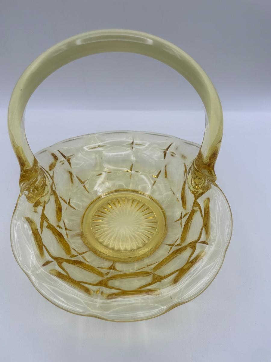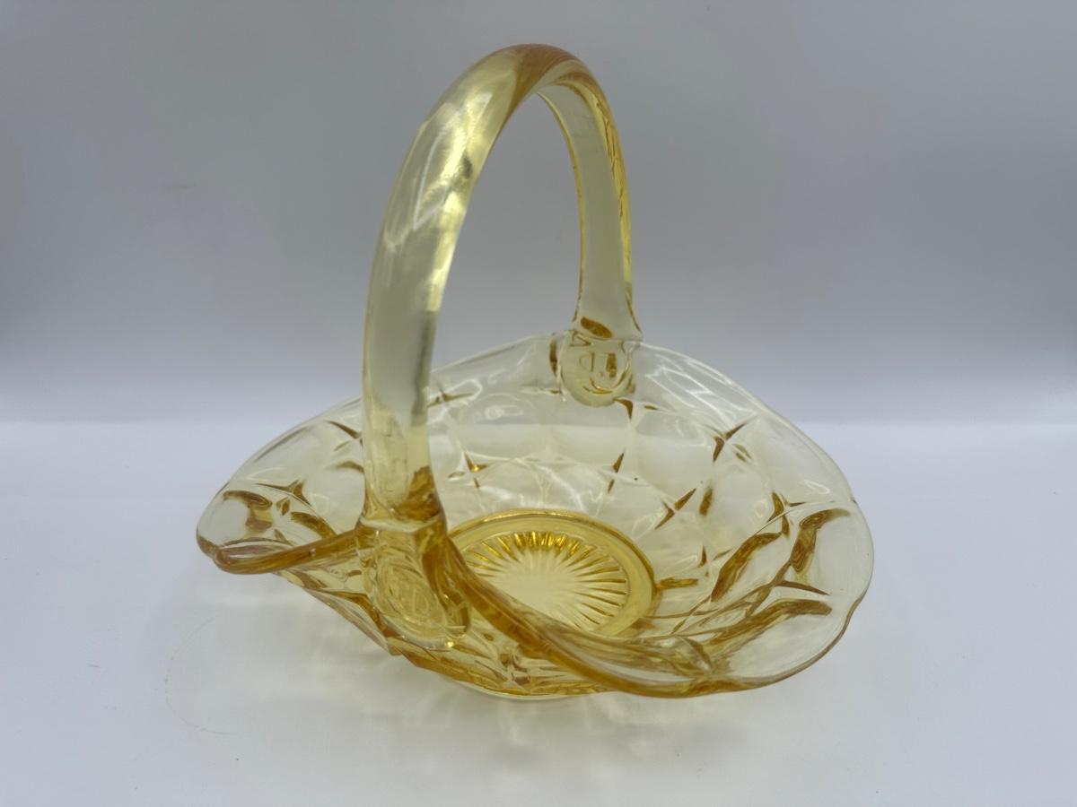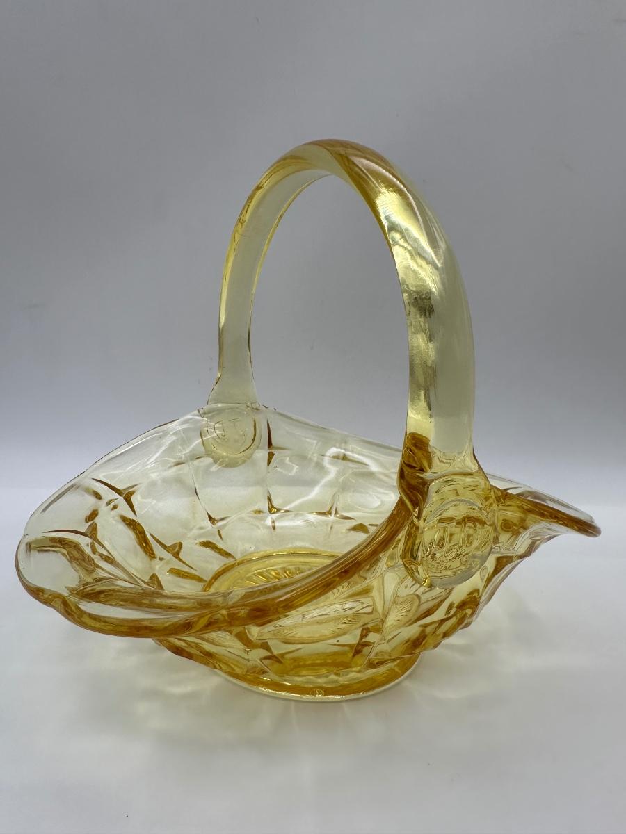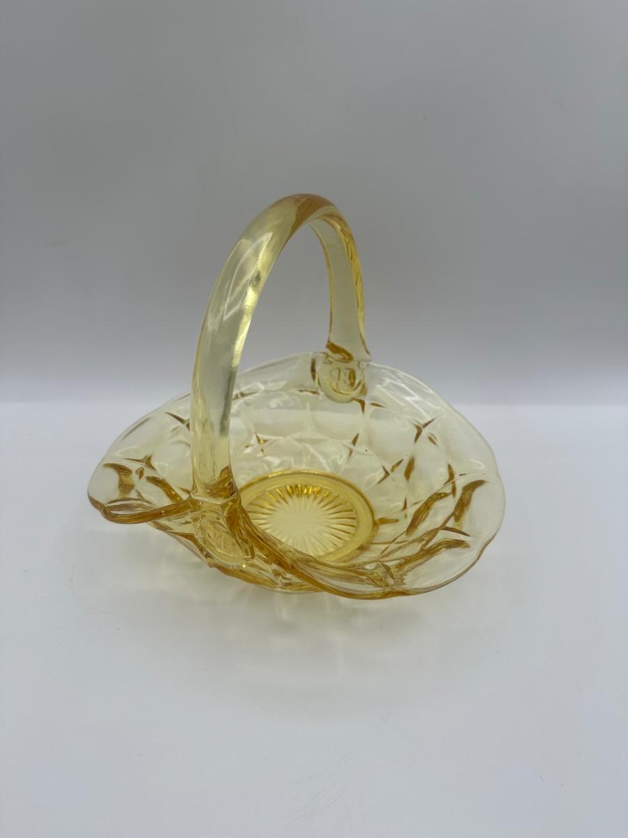 Vintage Indiana Glass Yellow Basket Stamped J.D.