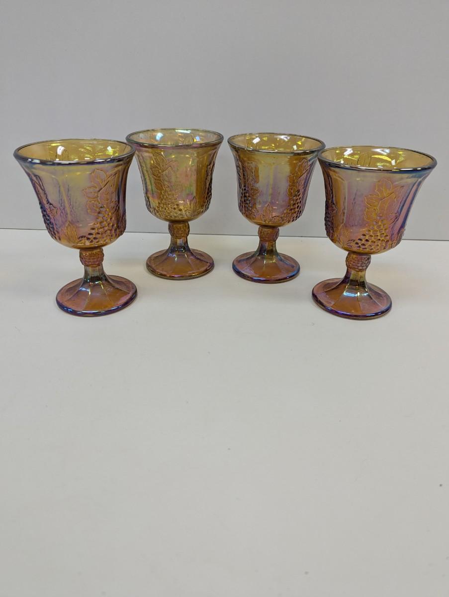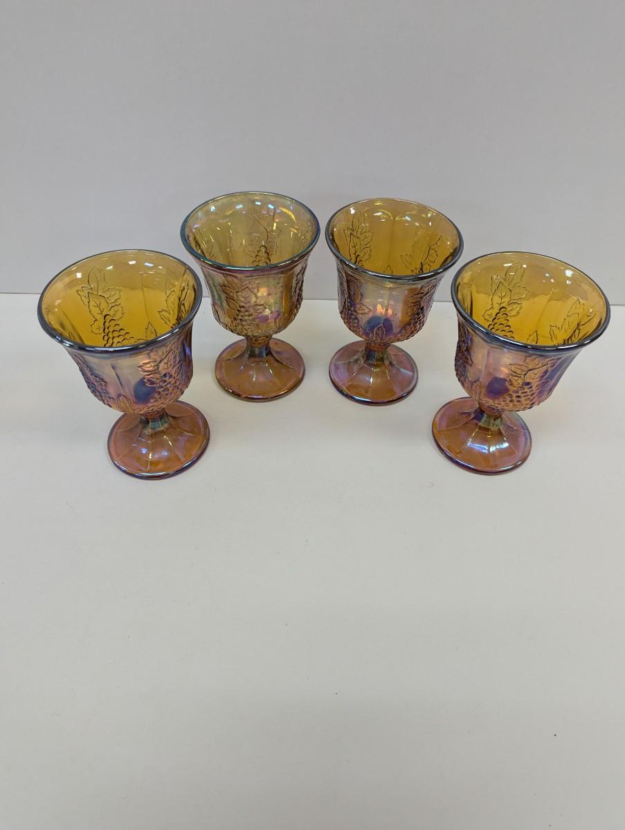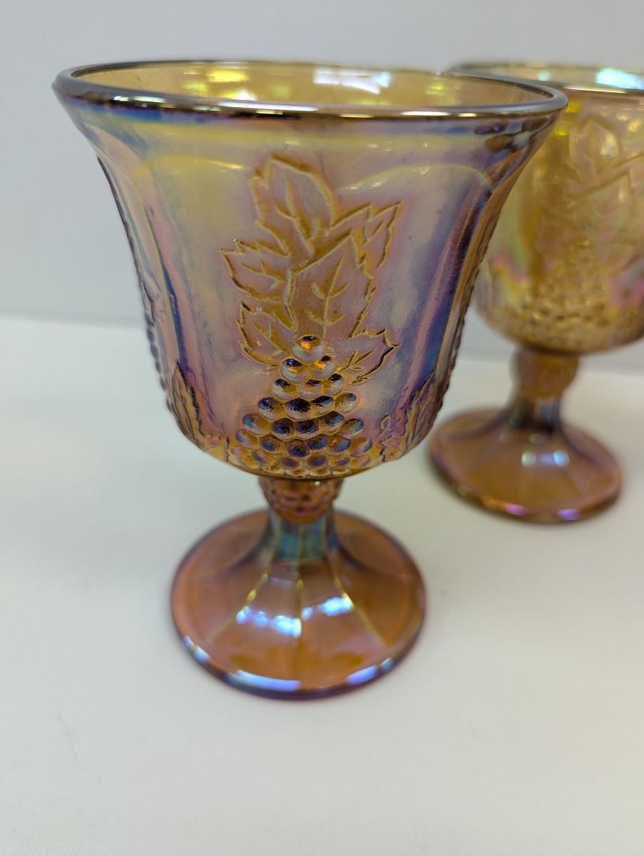 Vintage Indiana Golden Harvest Gold Carnival Glass Wine Goblets