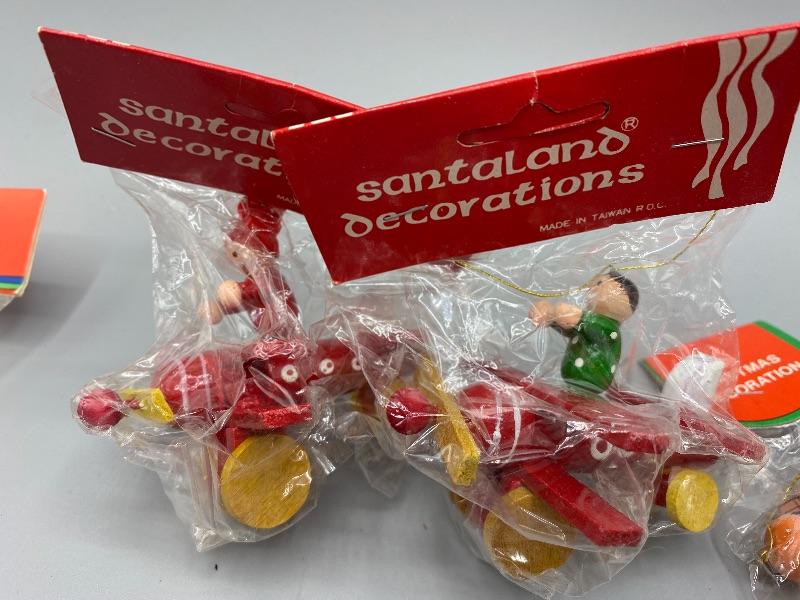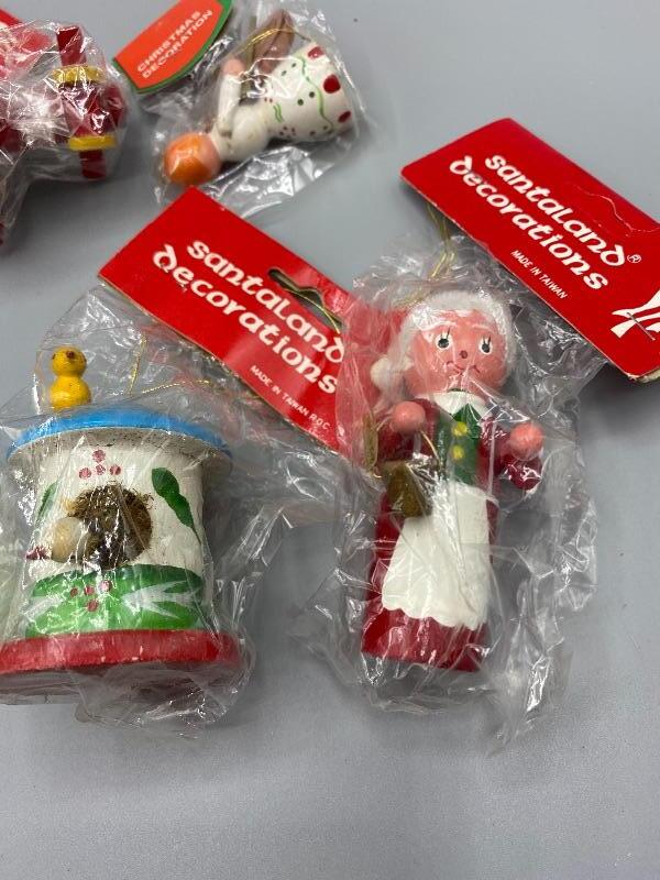 Vintage individually packaged Christmas ornaments. Painted wood. 7 total.