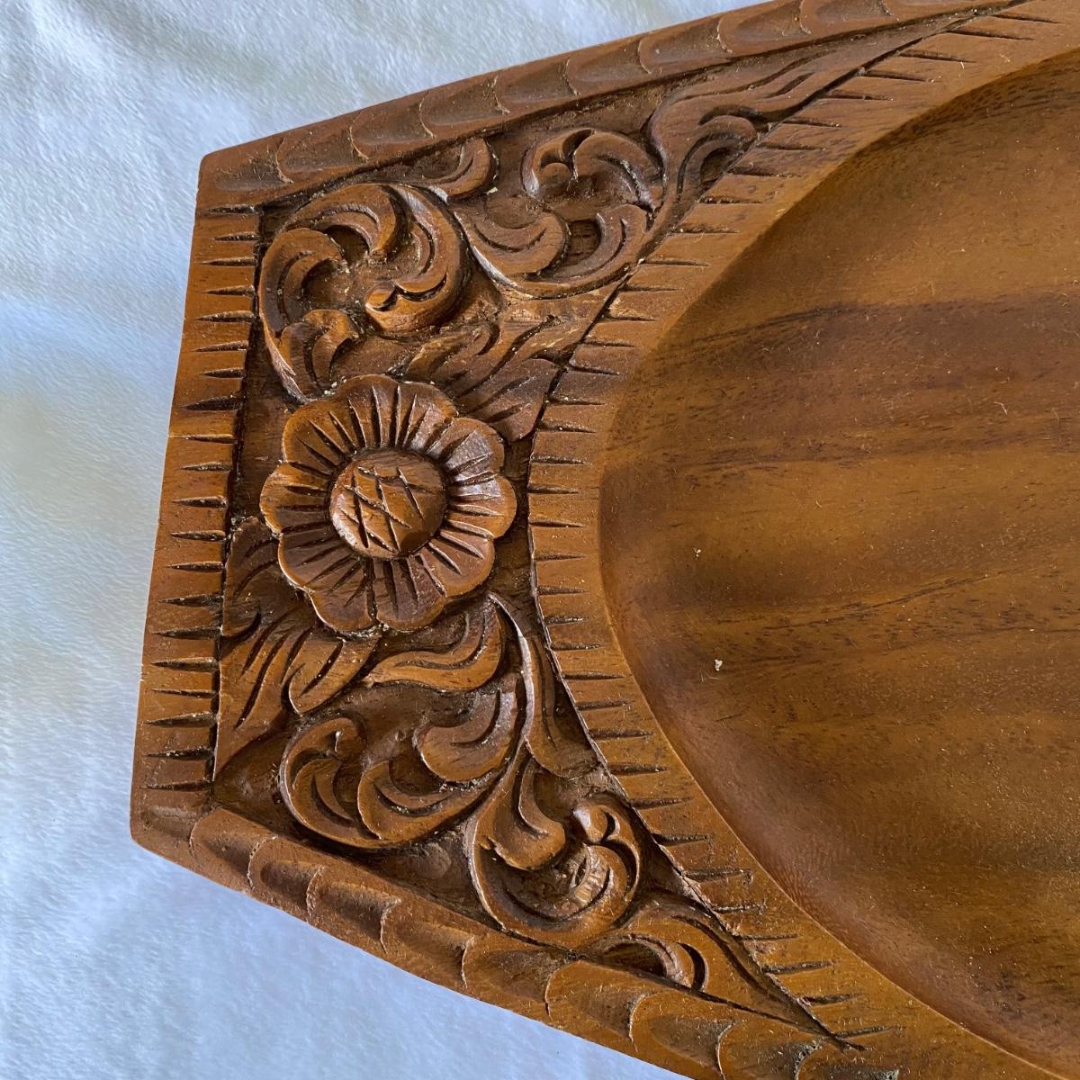 Indonesian Brass Serving Utensils and Hand Carved Wooden Serving Tray. (BR1-SL)