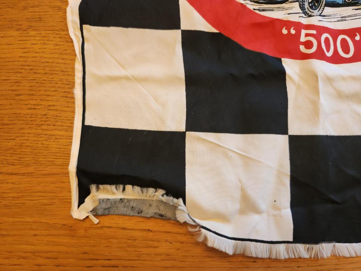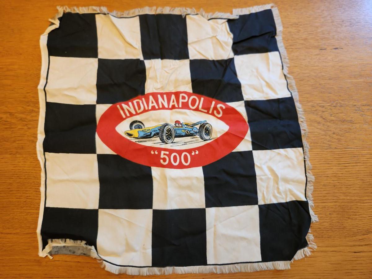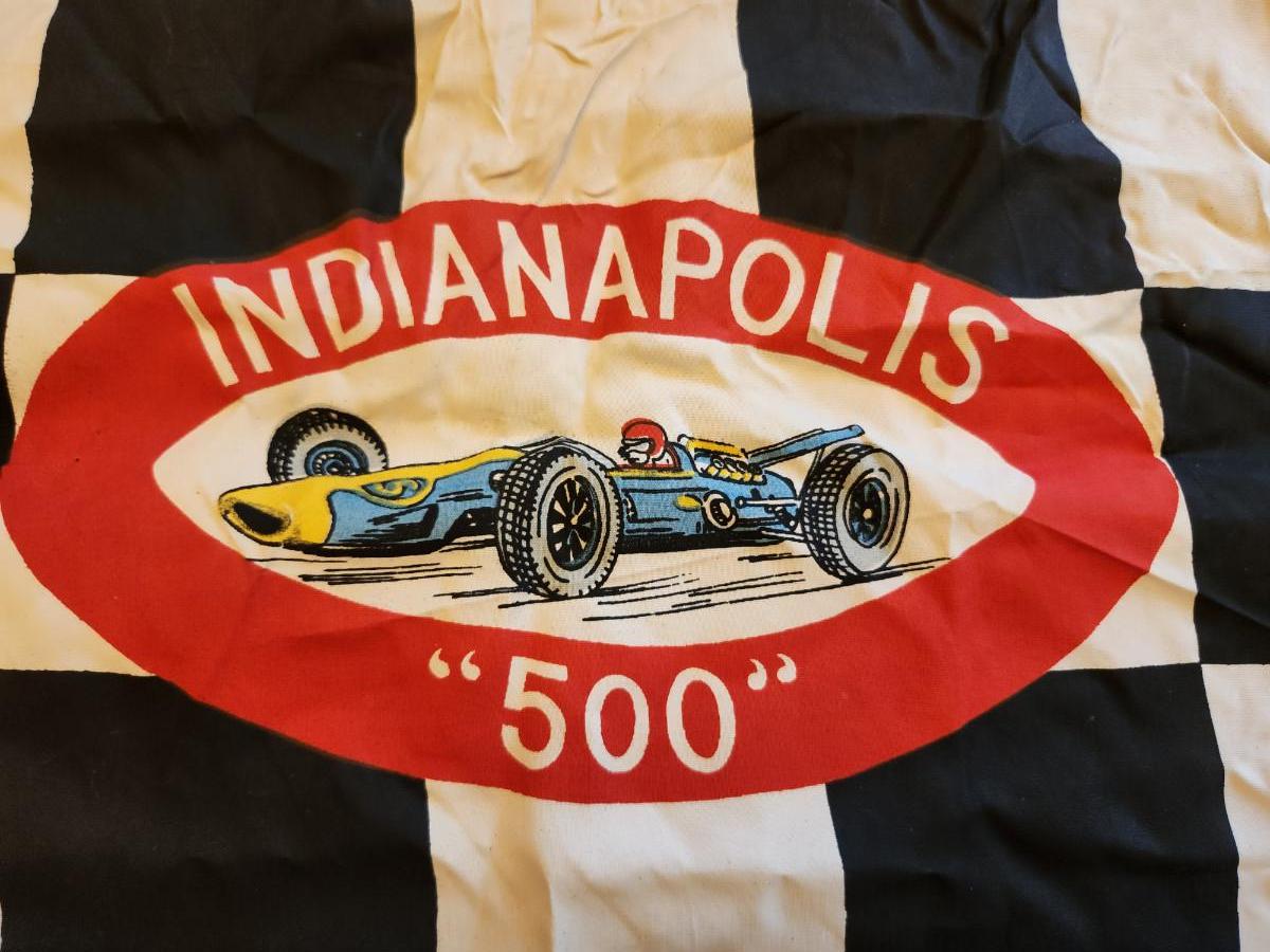 This auction lot is for a Vintage Indy 500 Souvenir Flag. This flag has a tag that says it was made in Japan and is constructed of 100% Rayon. The flag is in pretty good condition though it needs to be starched and ironed to remove the wading creases from rough storage. There a couple of very small on the left side seam but don't detract. This would be a nifty item to frame and hang in a sports room or as a gift for that special Indy 500 fan you know. The flag measures about 16-inches square.