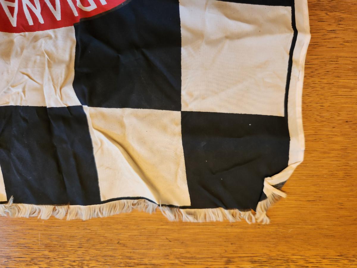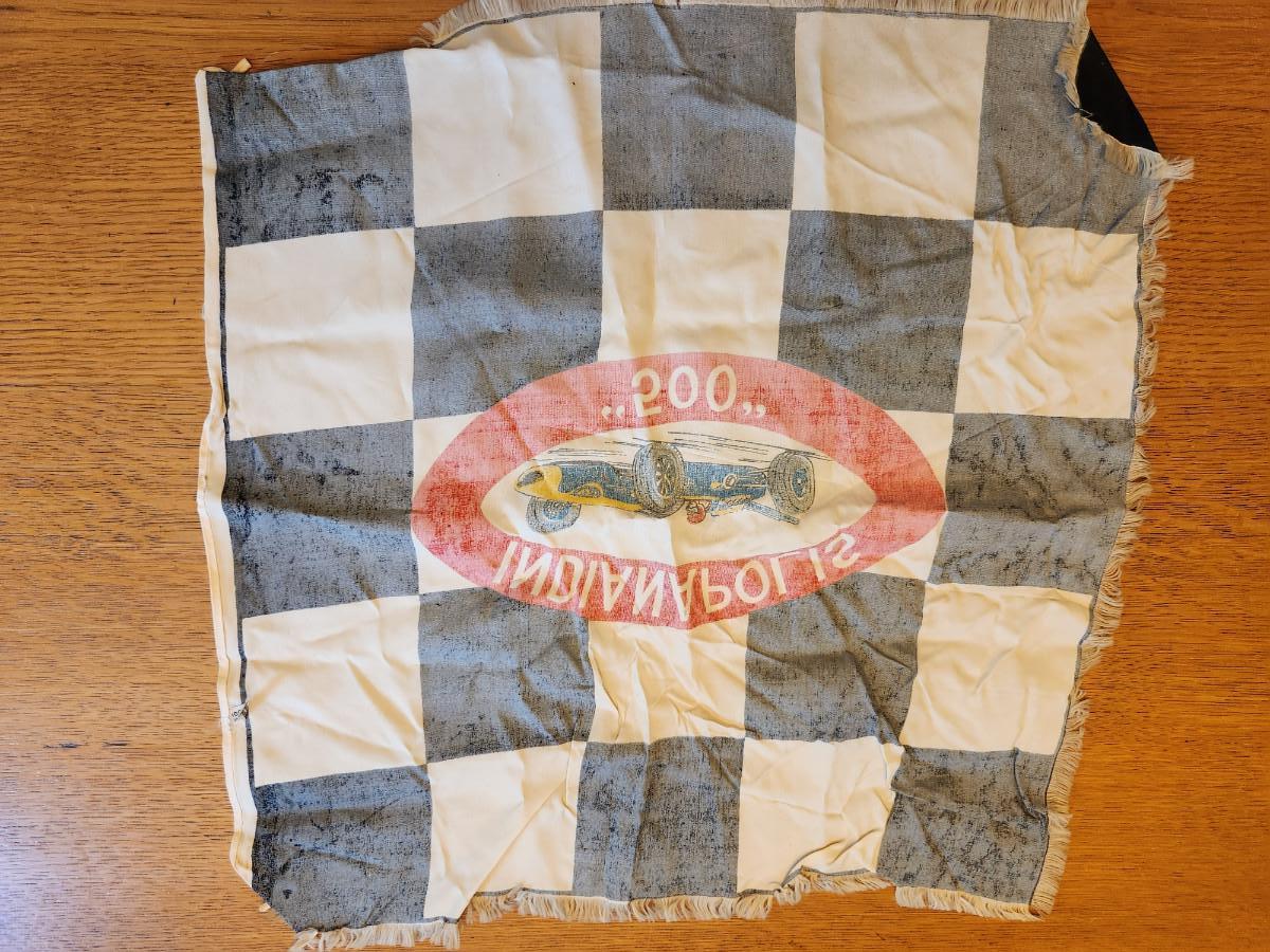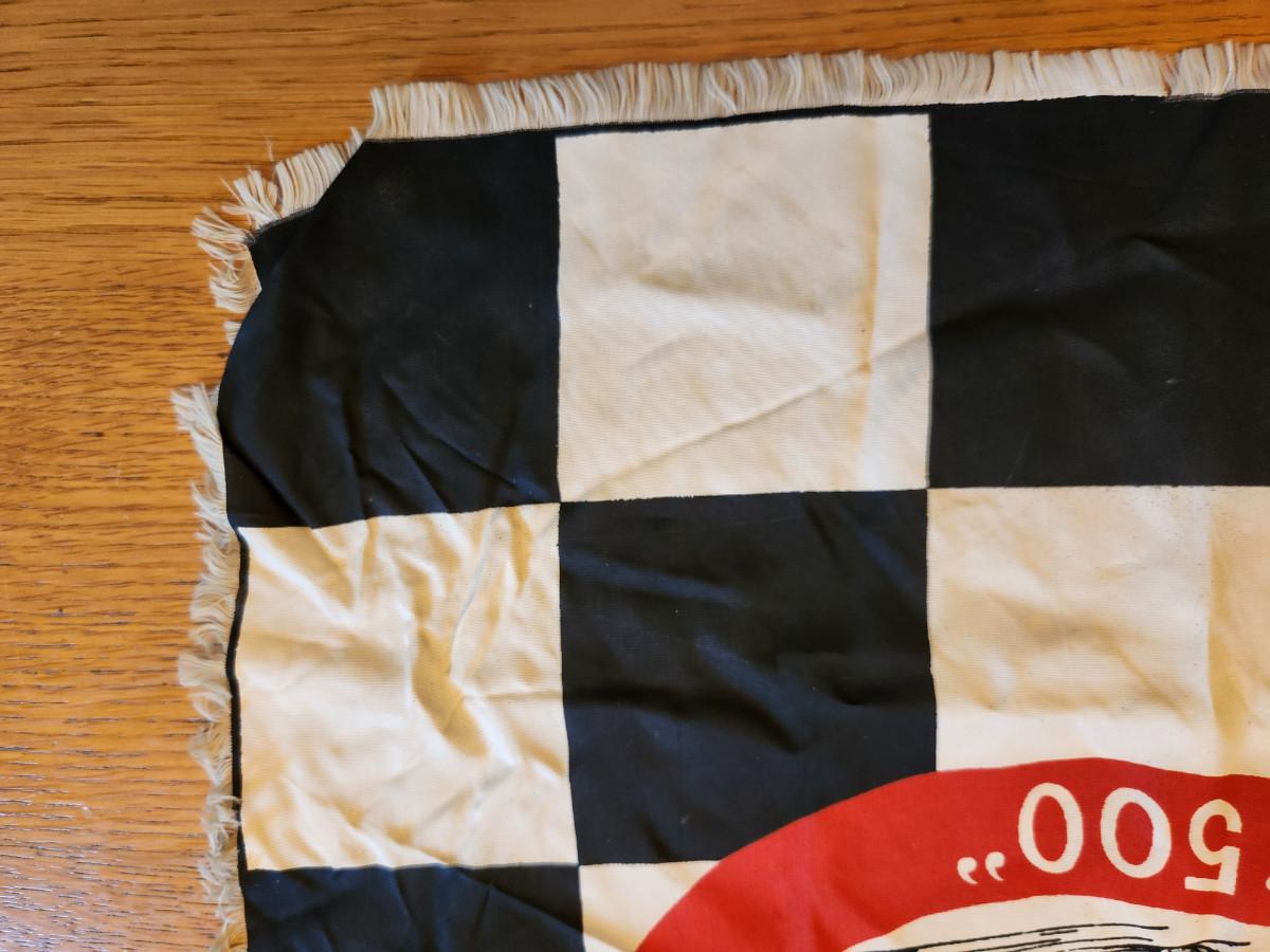 This auction lot is for a Vintage Indy 500 Souvenir Flag. This flag has a tag that says it was made in Japan and is constructed of 100% Rayon. The flag is in pretty good condition though it needs to be starched and ironed to remove the wading creases from rough storage. There a couple of very small on the left side seam but don't detract. This would be a nifty item to frame and hang in a sports room or as a gift for that special Indy 500 fan you know. The flag measures about 16-inches square.