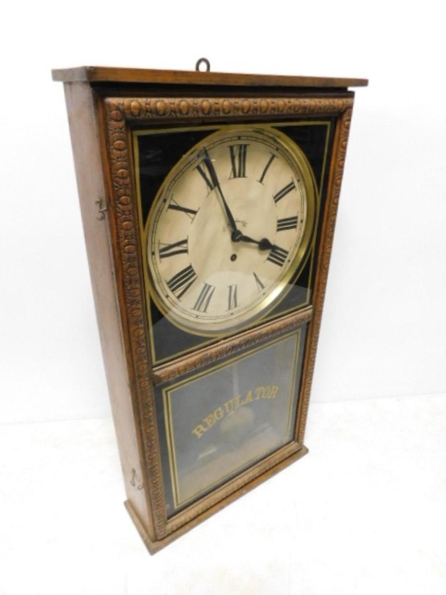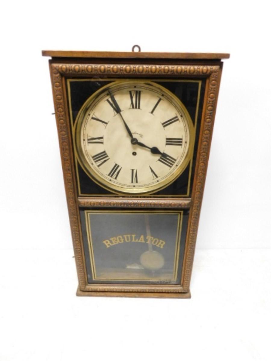 Vintage Ingraham Regulator Wood Case Wall Clock with Key untested