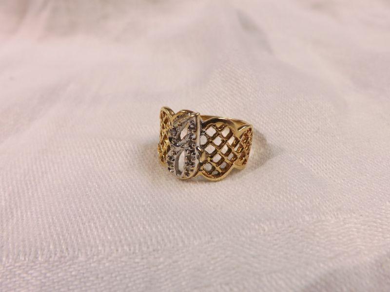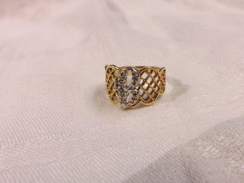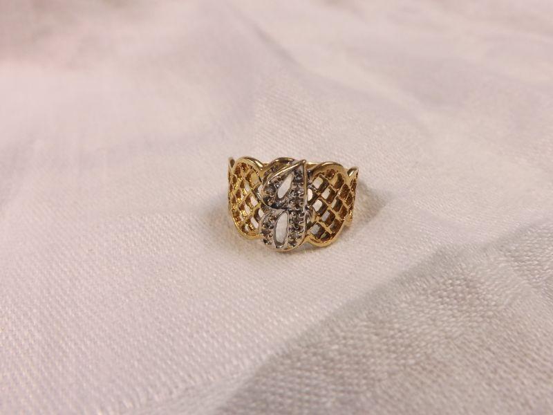 Diamond chips, 10k gold 2.4g. Could be a J or a B. **Please read Terms and Conditions before placing a bid. Pick up is Wednesday, September 25 from 4pm to 7pm and Saturday, September 28 from 9am to 1pm in Williamstown, NJ. All sales are final. All sales are as is, where is. Please review all photos. Any props included in photos are not included in listing. All measurements are approximate.