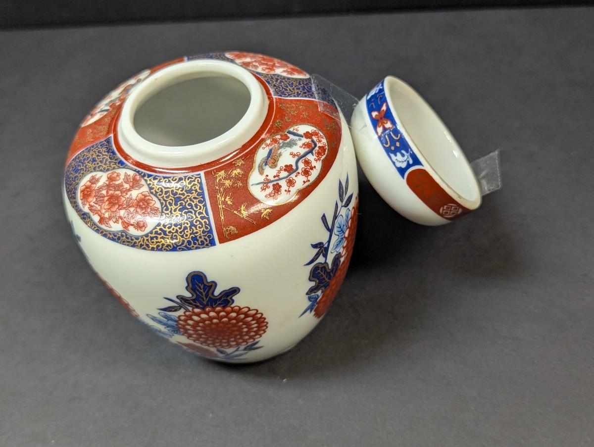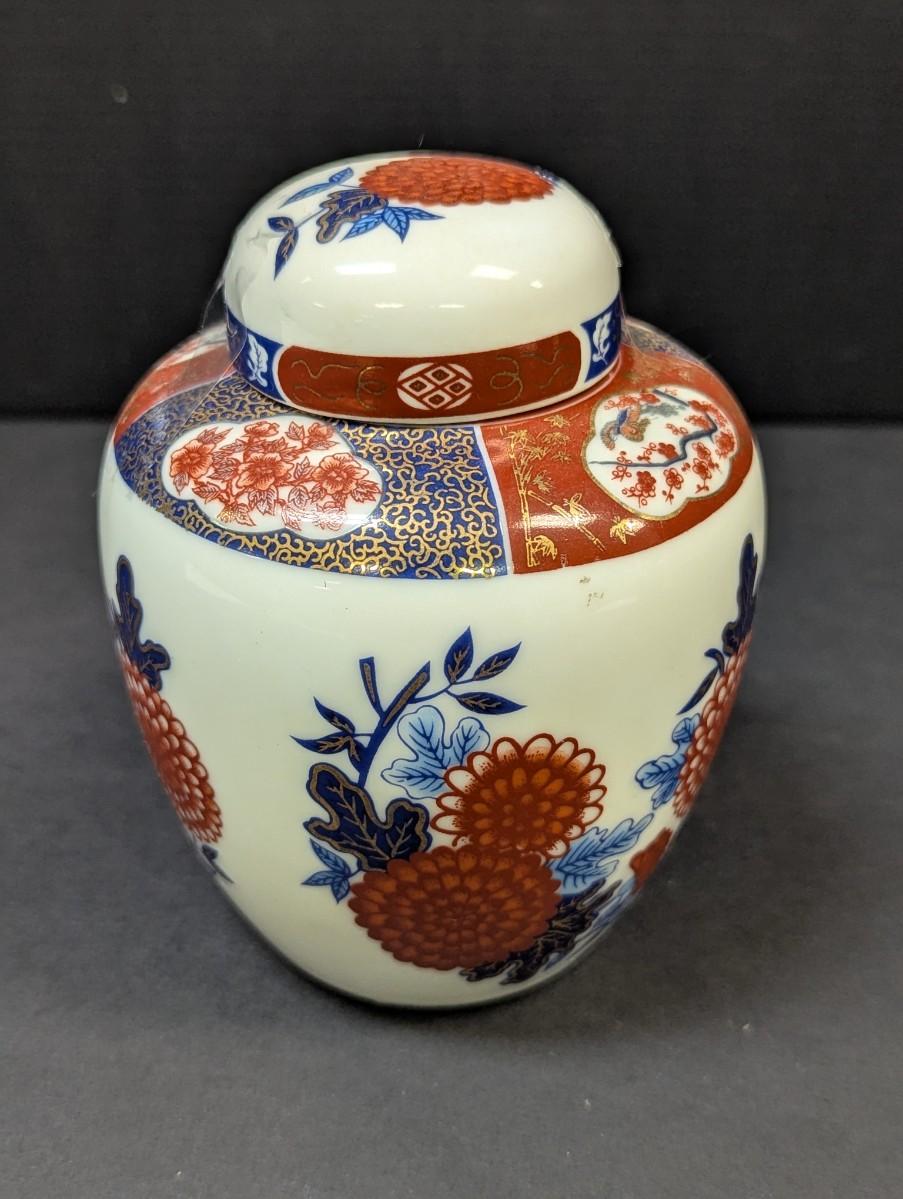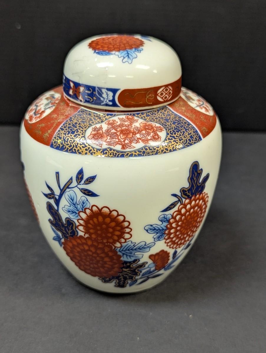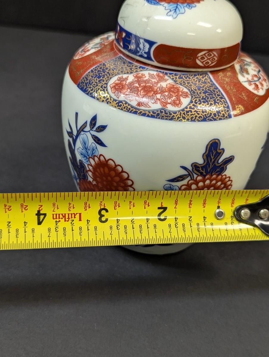 Vintage Intepur Hand Painted Floral & Leaf Design Ginger Jar