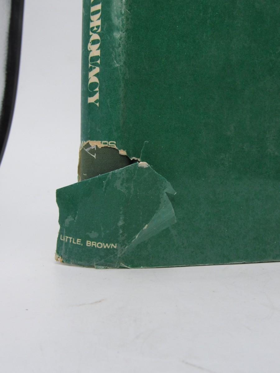 There is noticeable ripping to the dust jacket of the green book, but there is no significant and is in overall good collectible or readable condition.