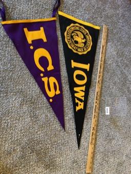 Vintage Iowa Collegiate-Style Pennants Lot of Two
