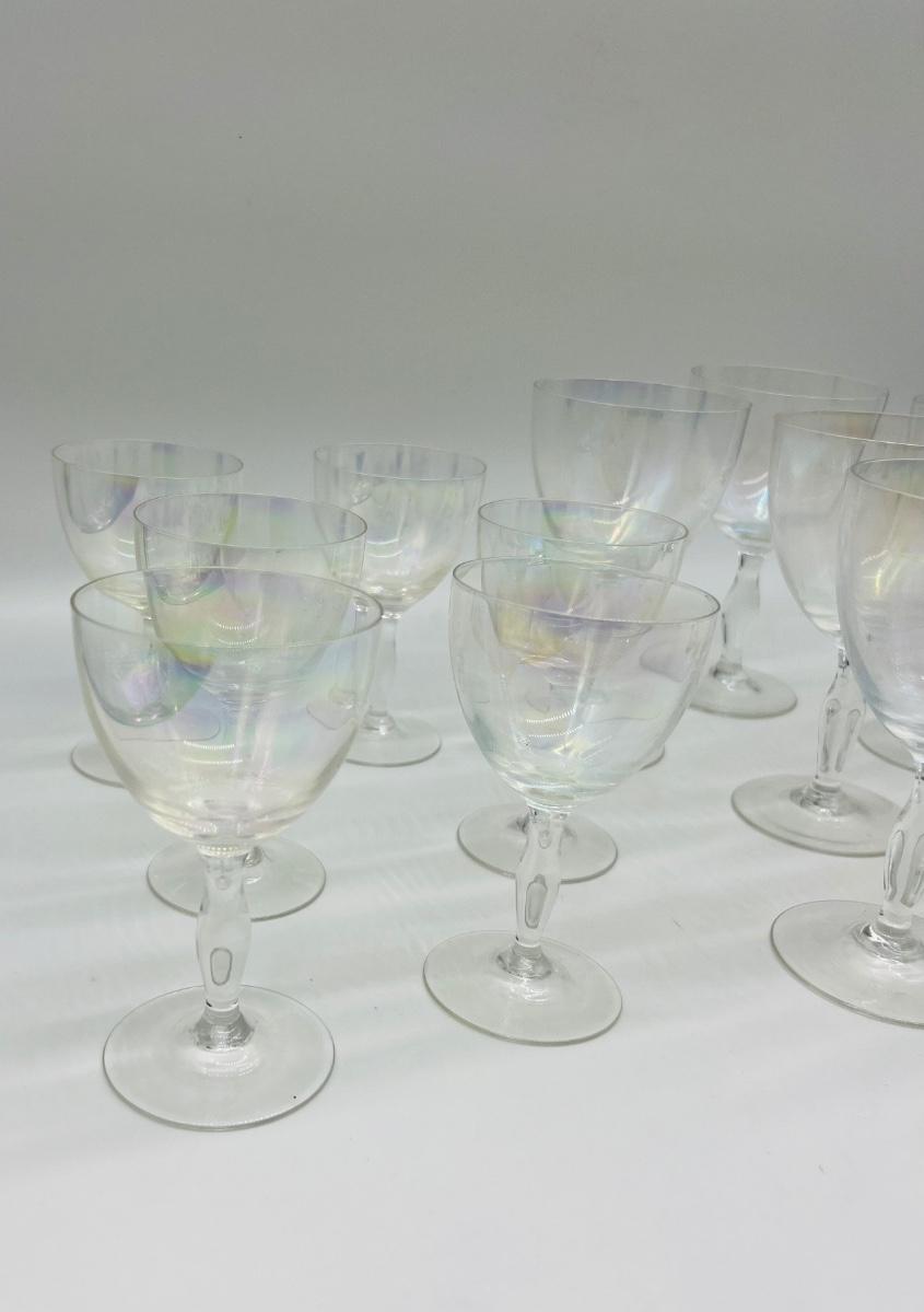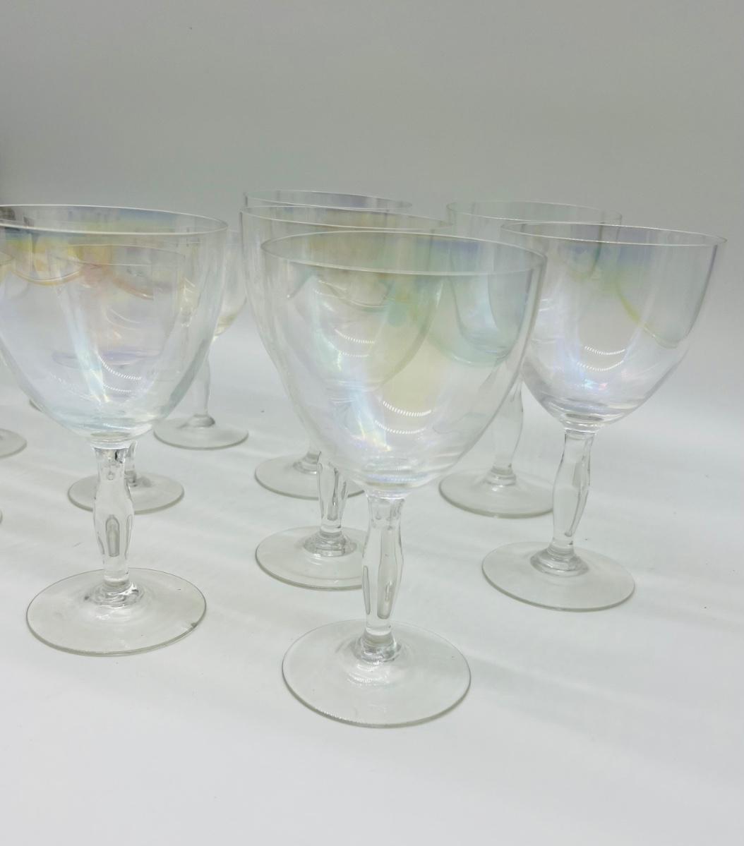 Total OF 12 IRIDESCENT GLASSWARE, 6 small glasses and 6 larger.