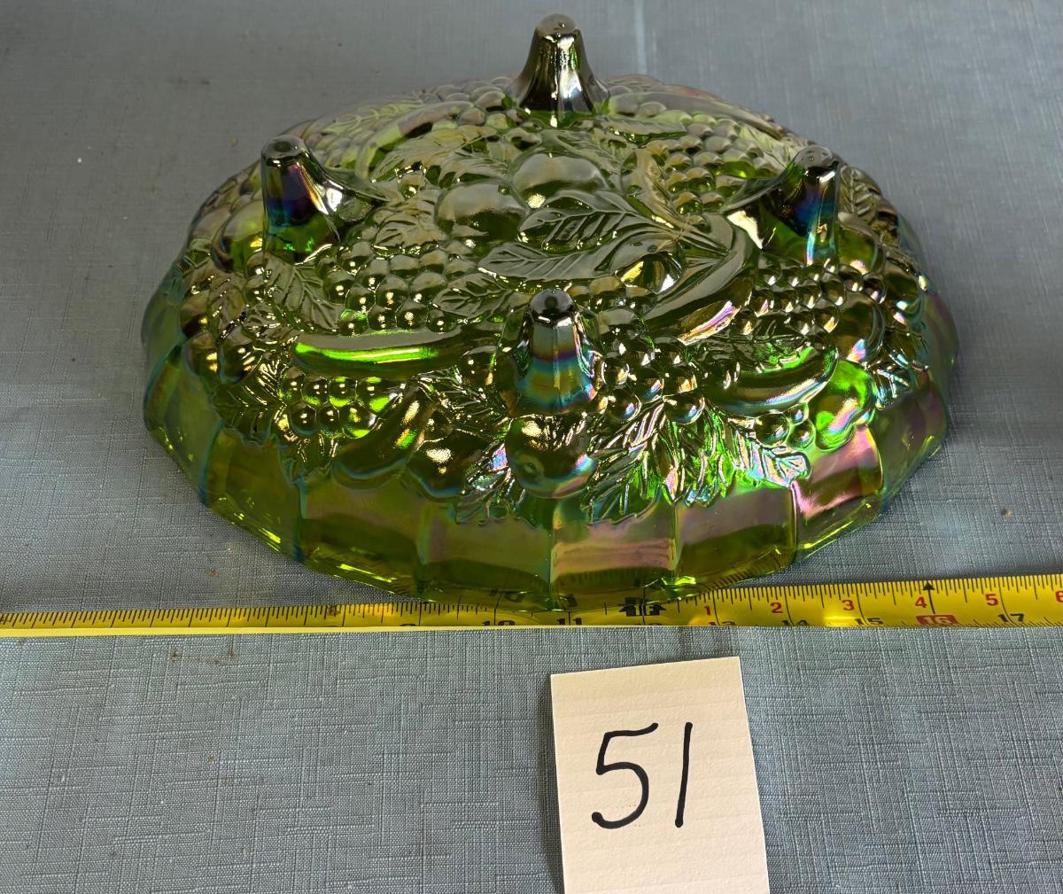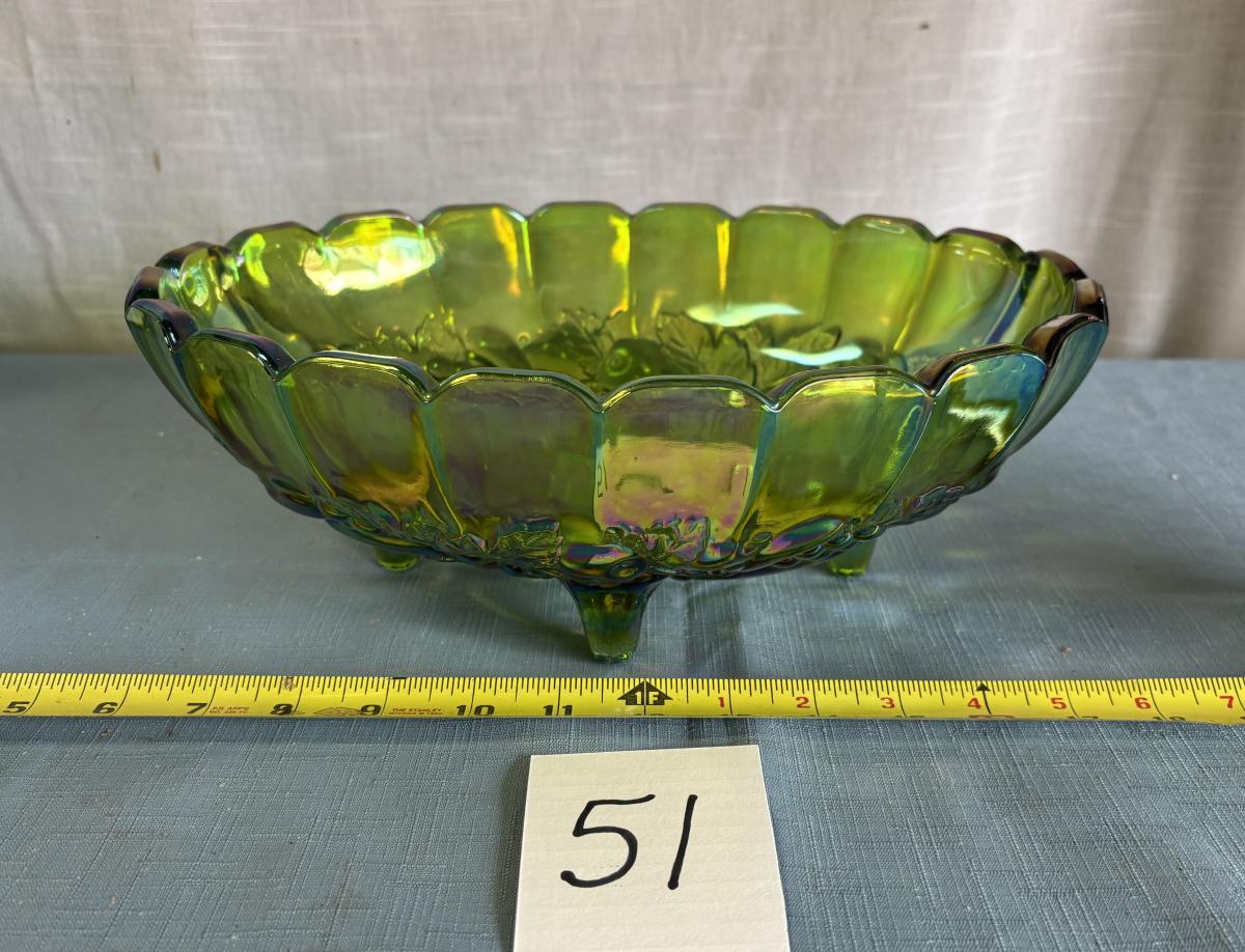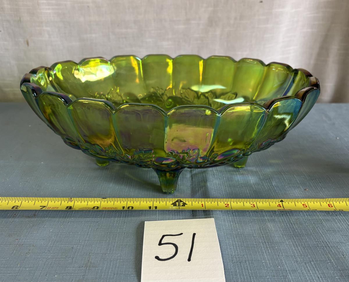 Vintage Iridescent Green Carnival Glass Footed Fruit Bowl