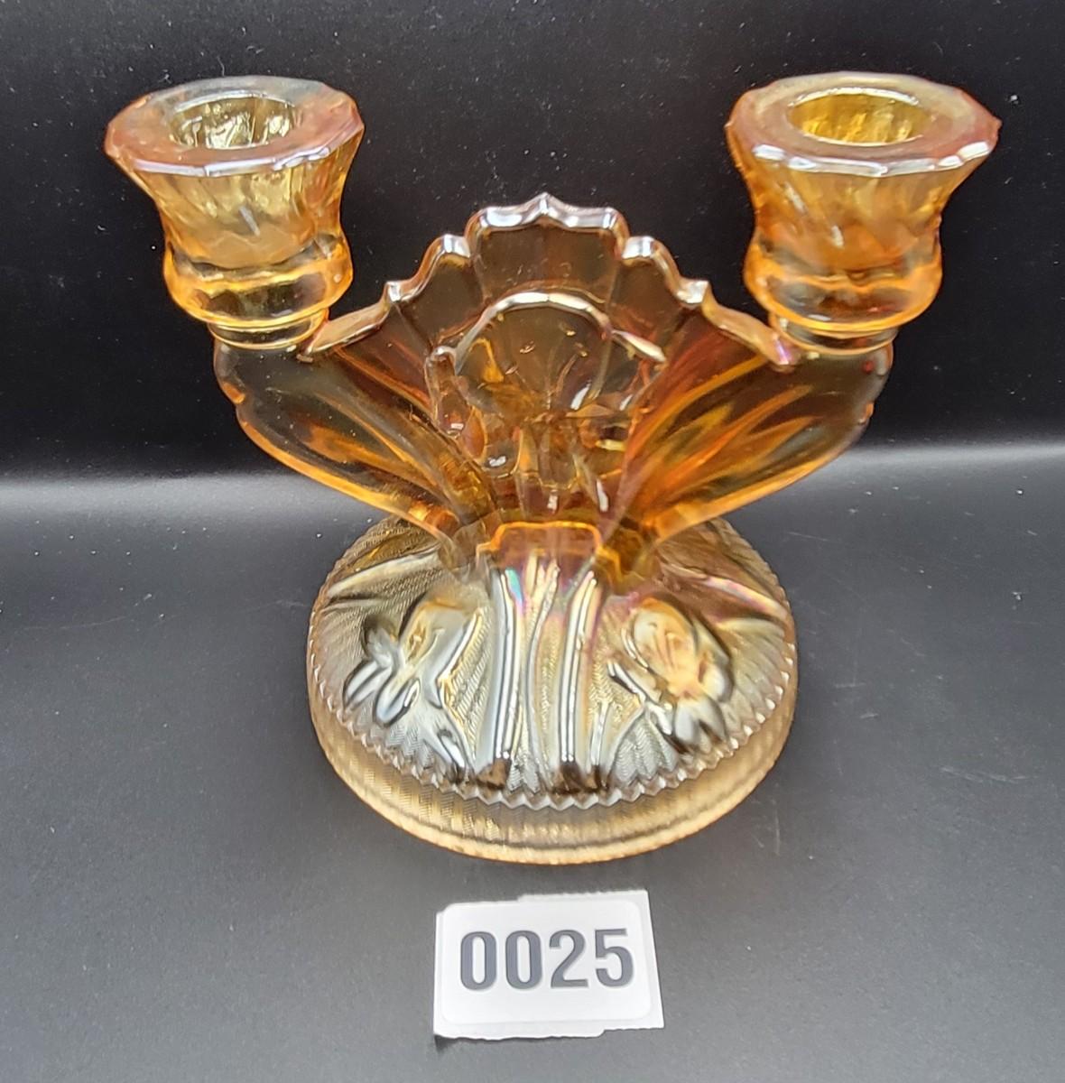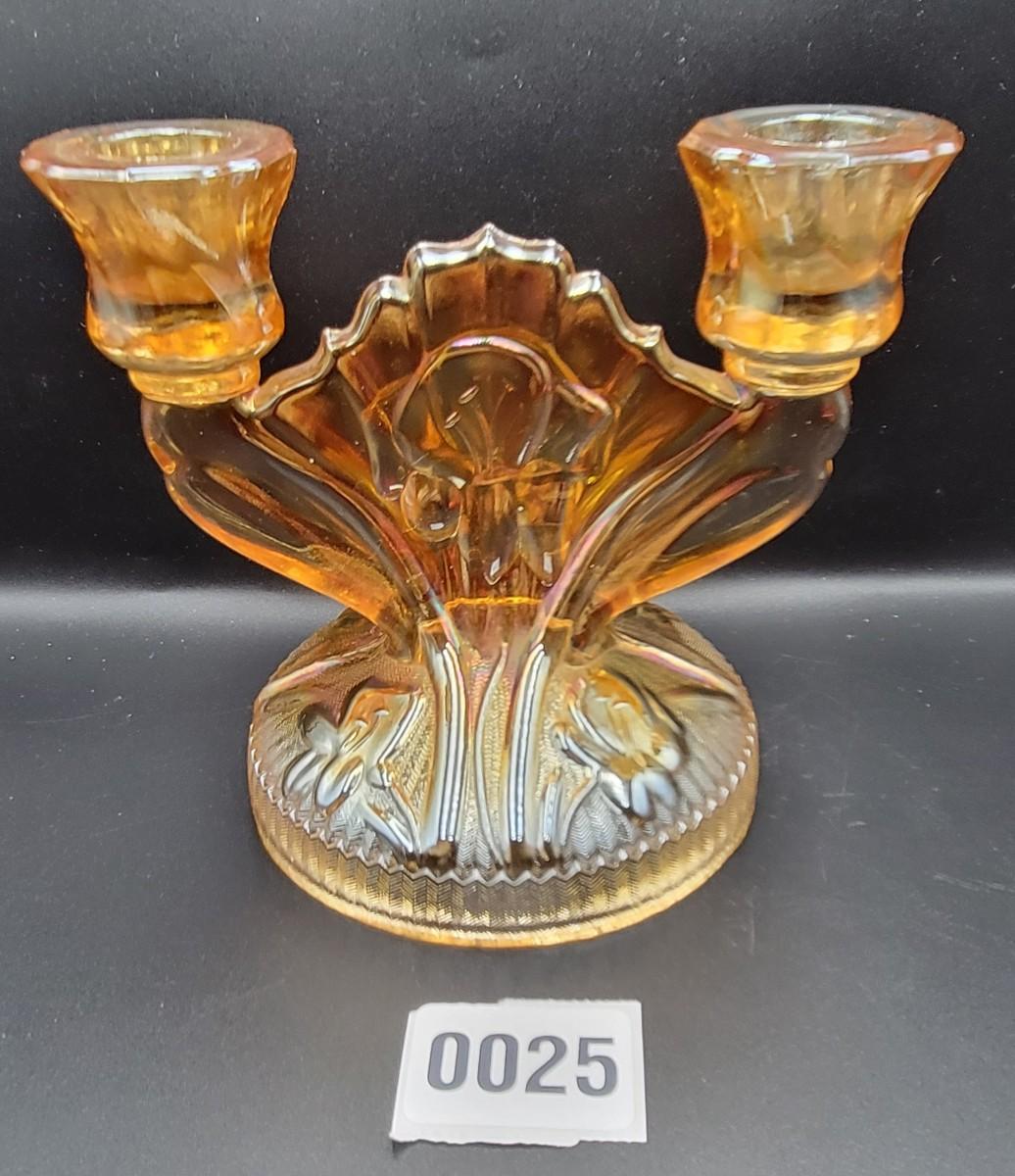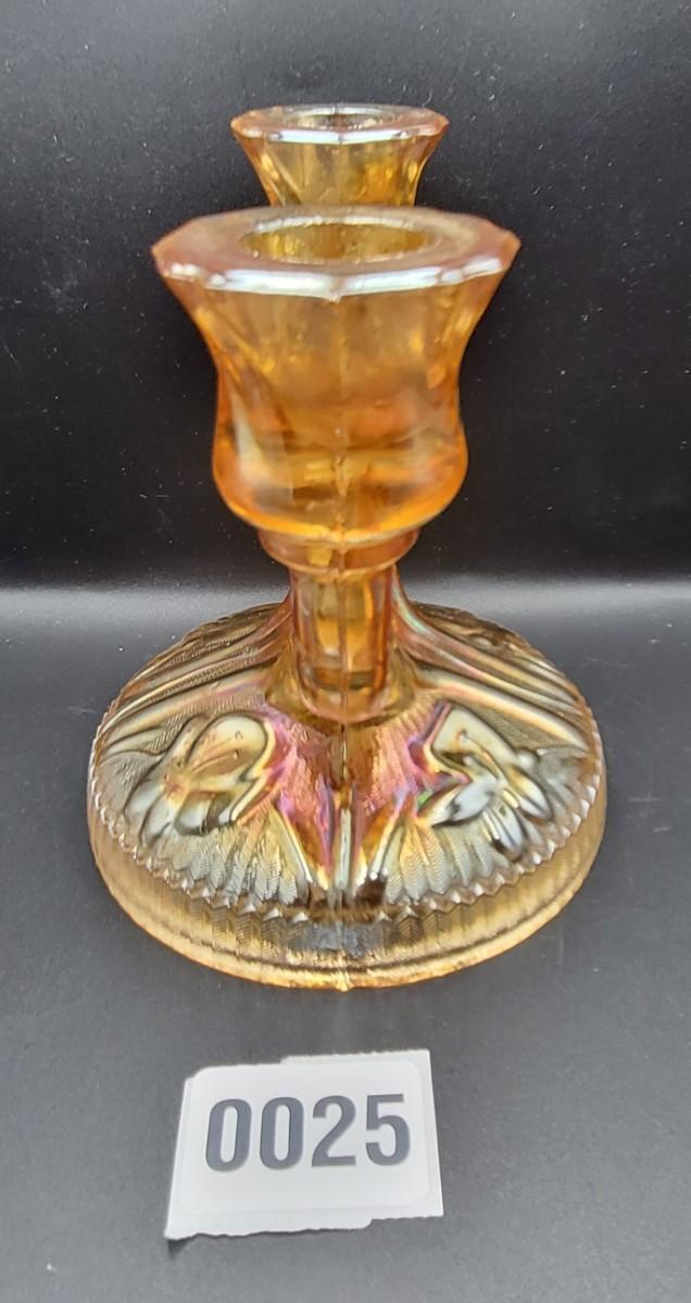 Vintage Iris and Herringbone Carnival Glass Candle Holder