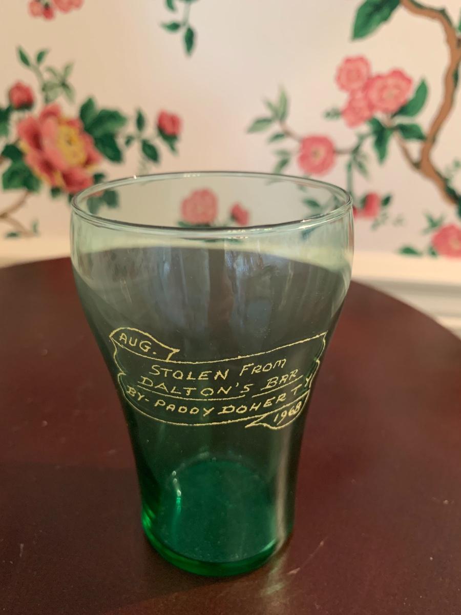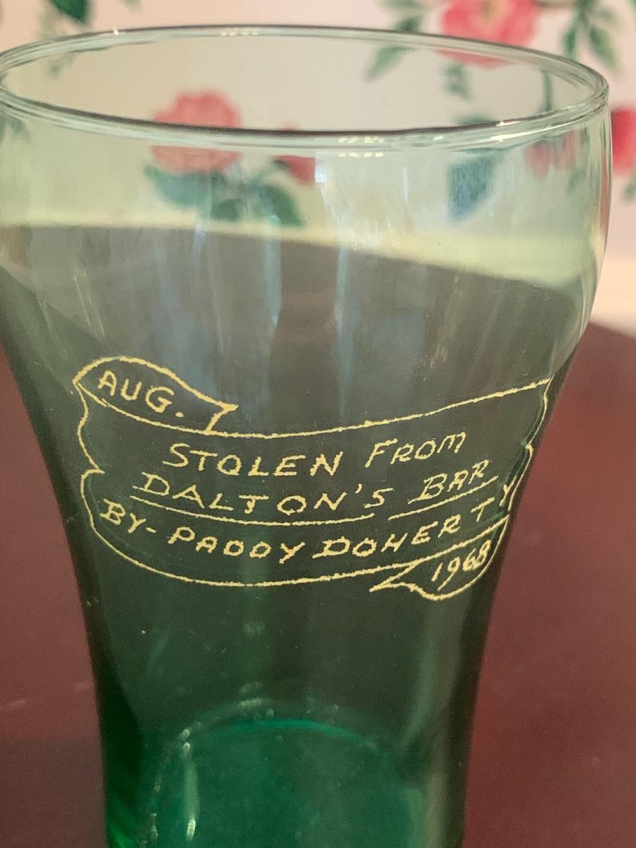 "Stolen from Dalton's Bar by Paddy Doherty, 1968" Etched in the glass