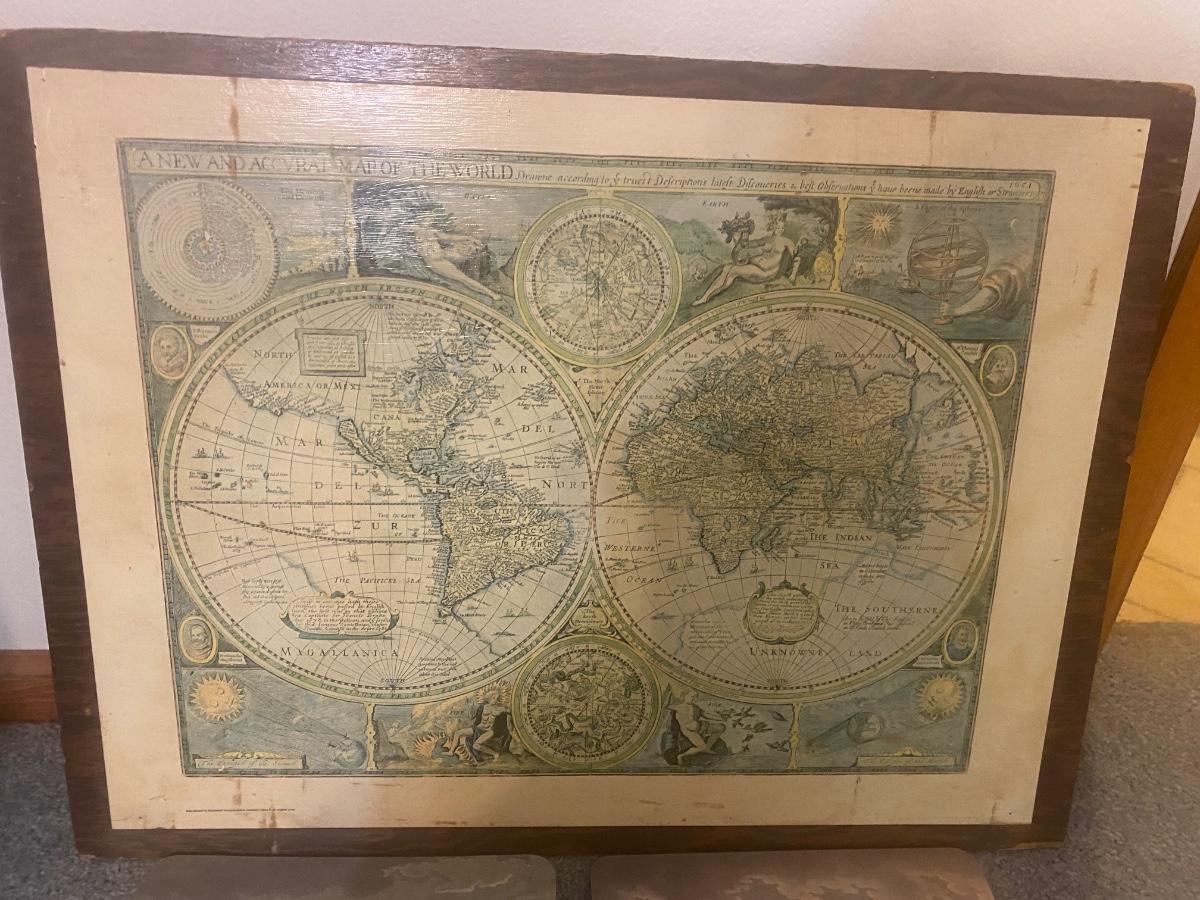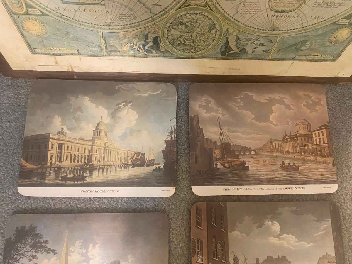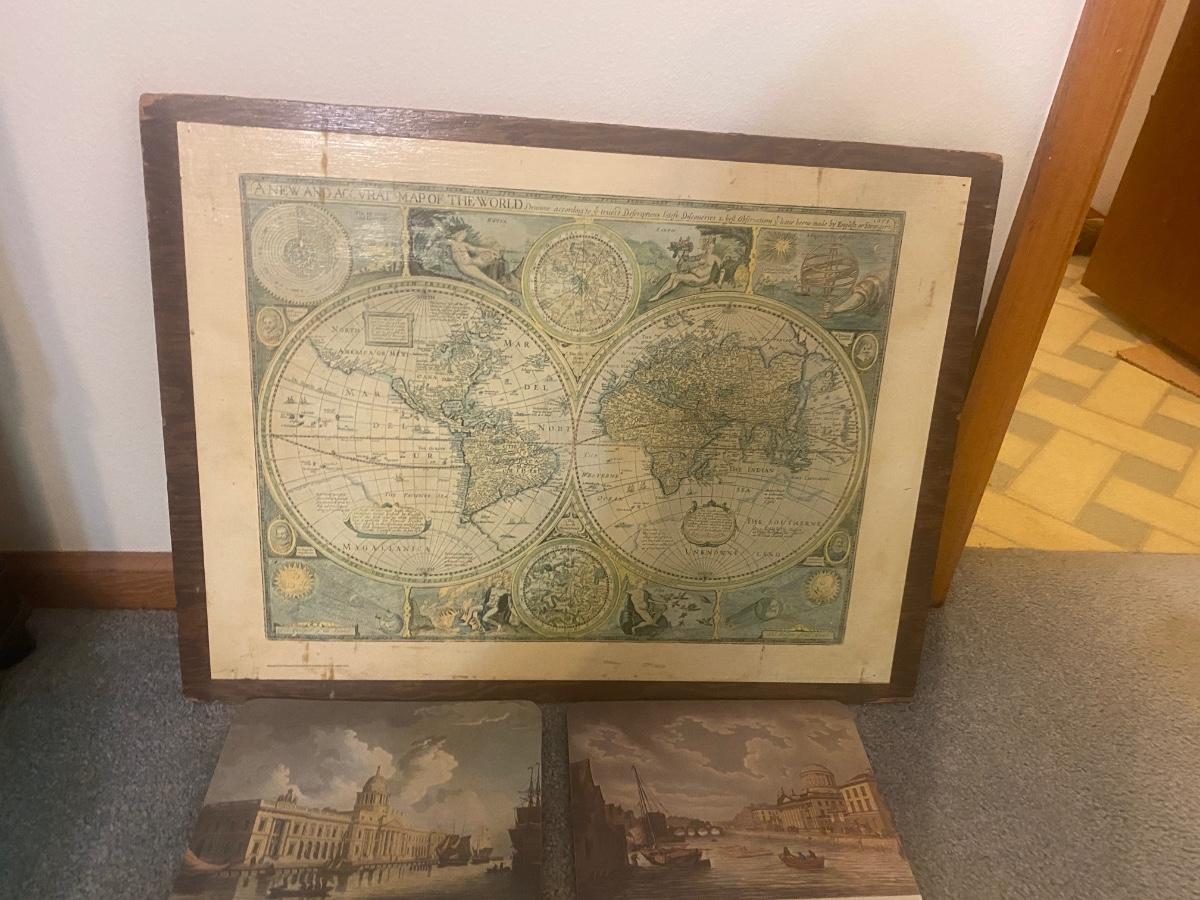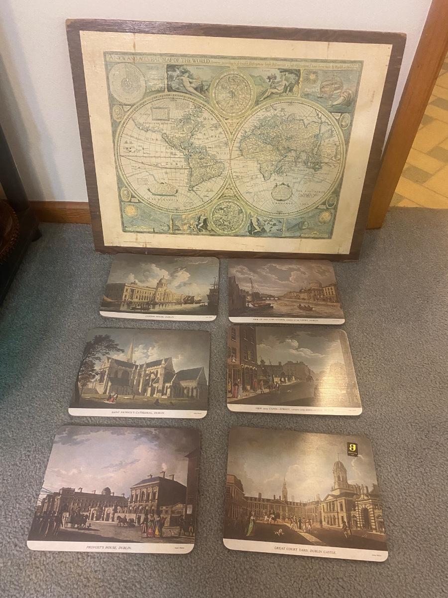 VINTAGE IRISH FELT BACK PLACEMATS AND DECOUPAGE OLD WORLD MAP ON WOOD