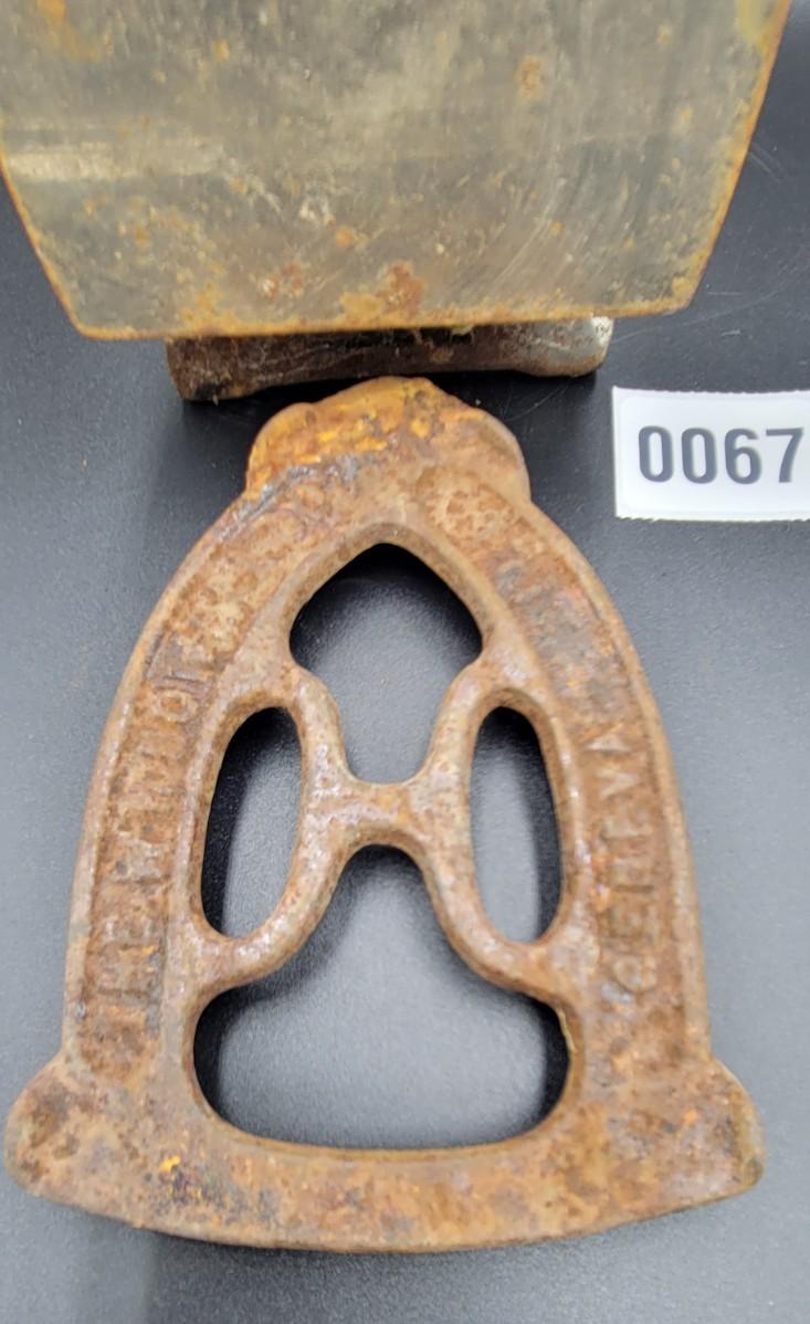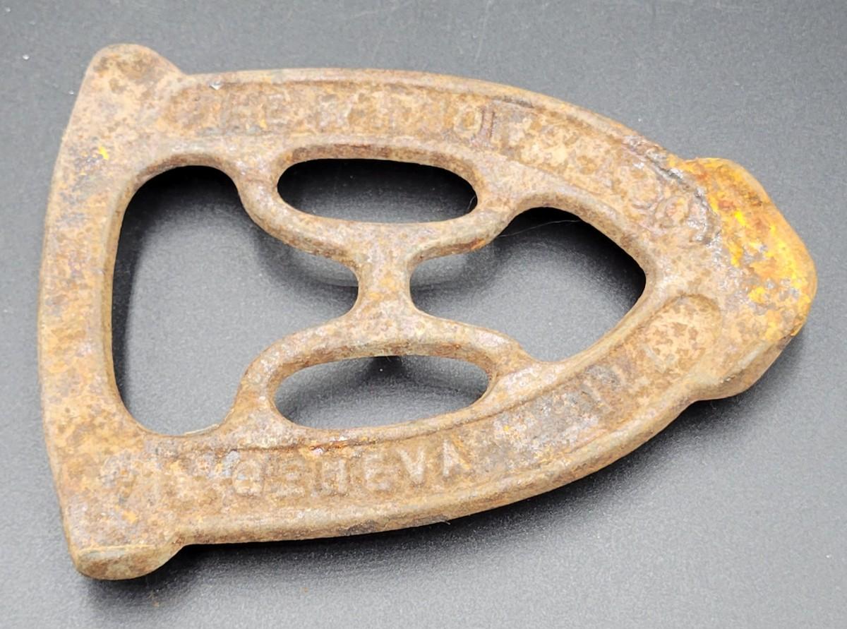 Without being cleaned up, it's a bit difficult to make out the lettering in its entirety on the trivet. I have taken multiple pics of the trivet so that, perhaps, you might be able to see something more than I can.