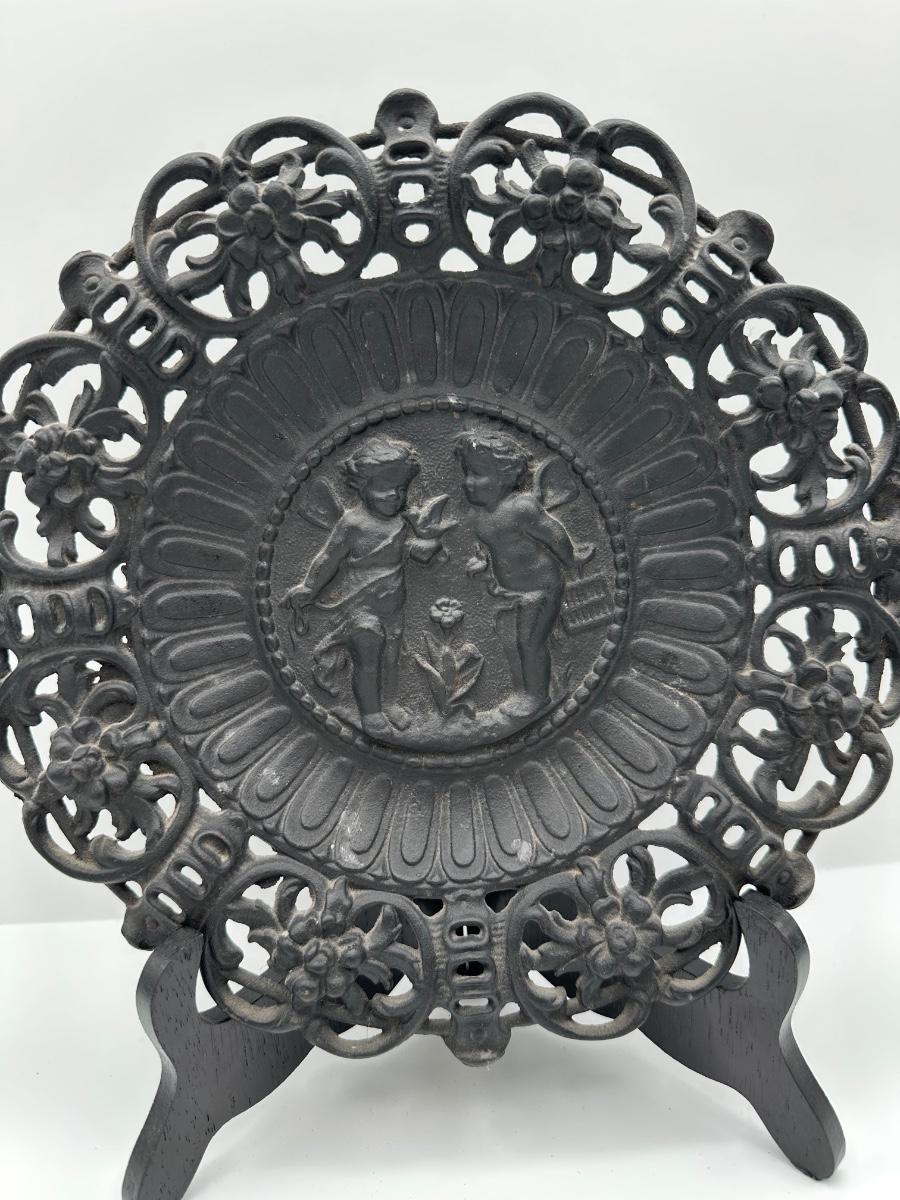 Vintage Iron Art Co. Cherubs Cast Iron Two Handled Tray.