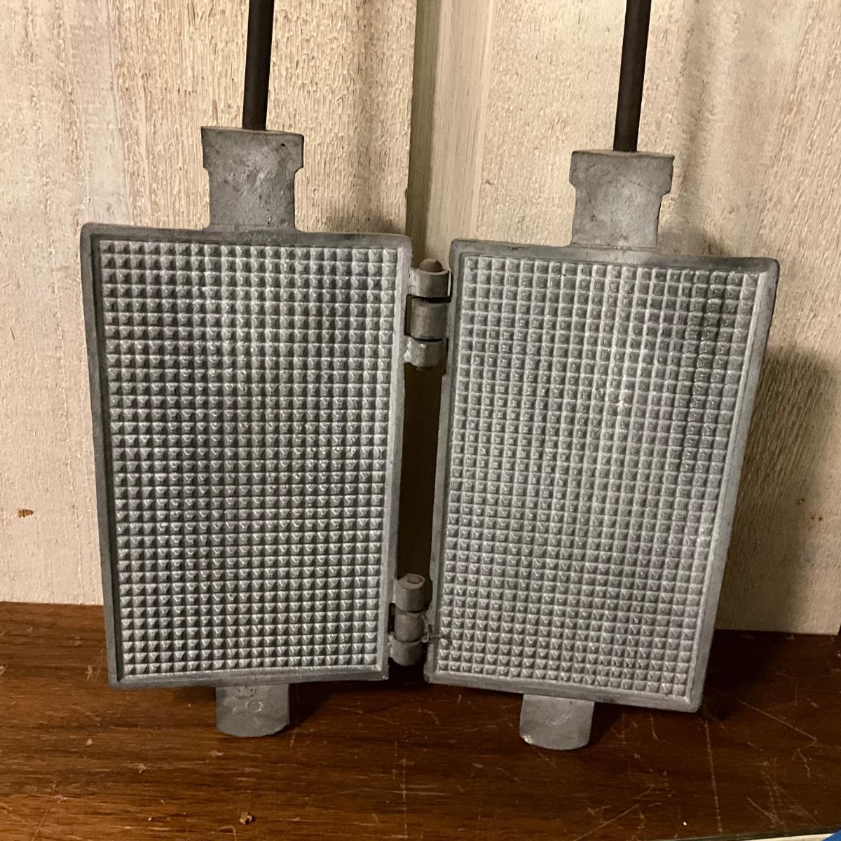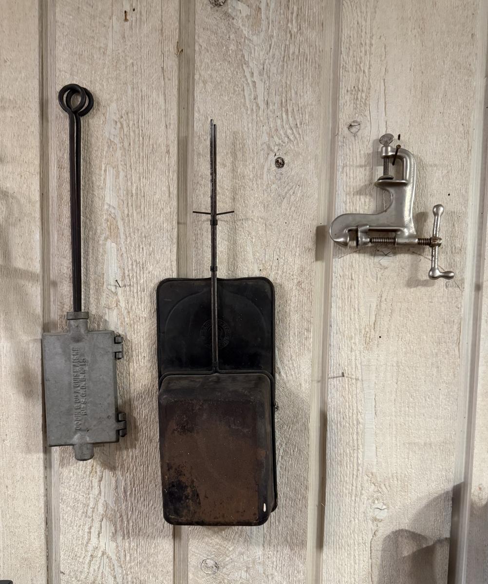 Vintage iron popcorn maker, waffle maker and nutcracker