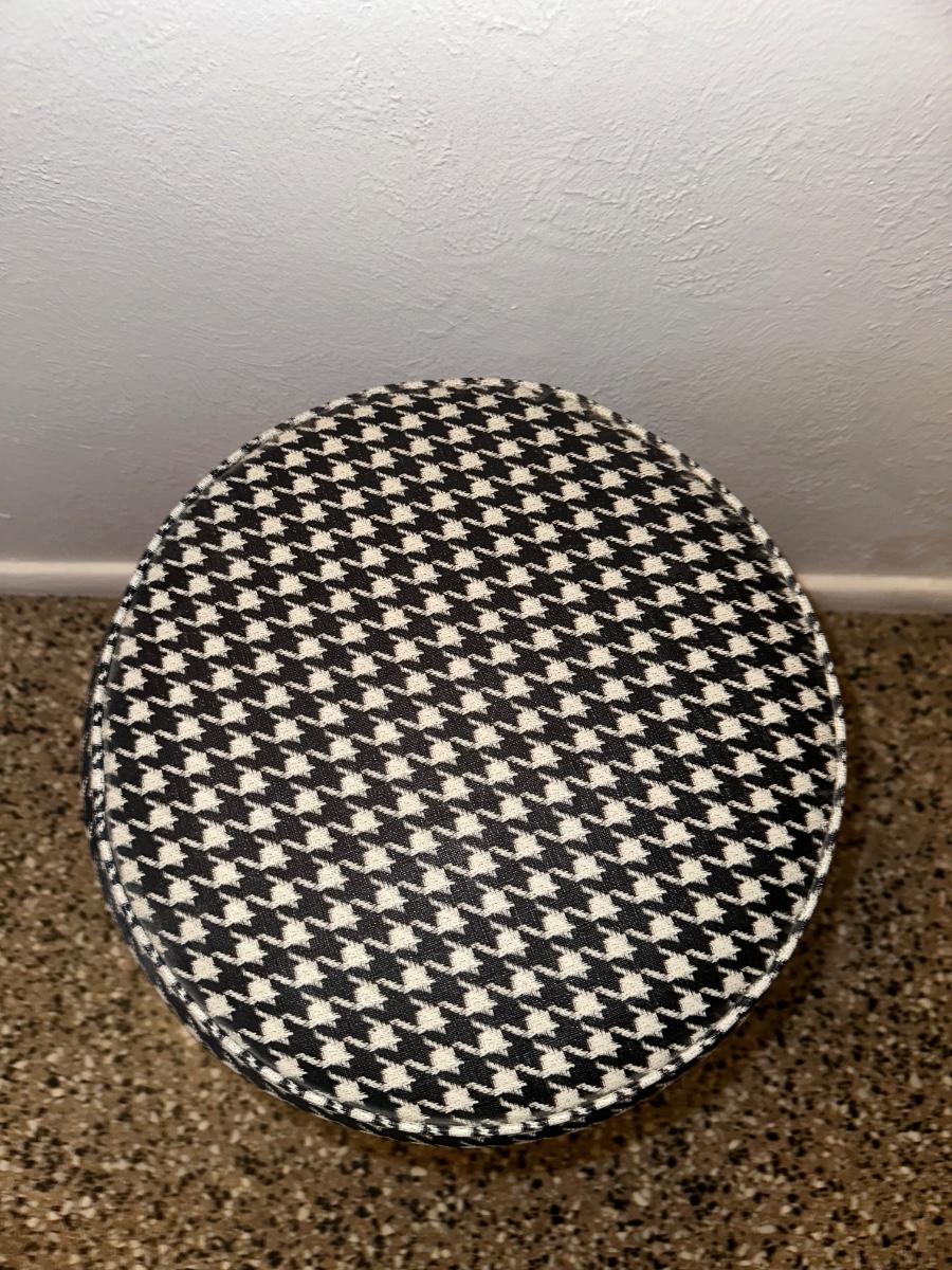The seat cushion is plastic. Heavy stool.