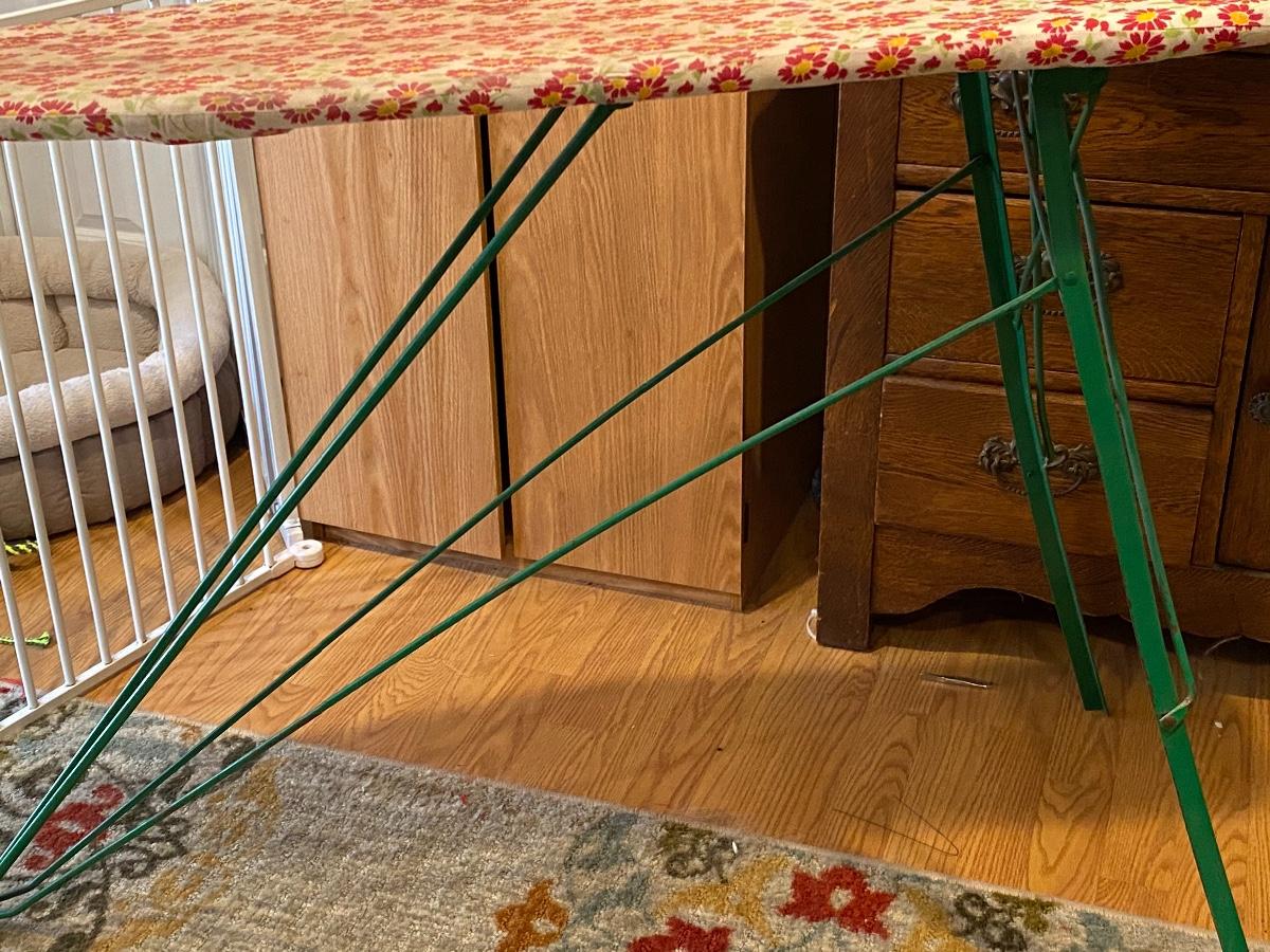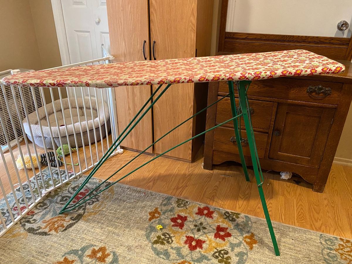 Vintage full size ironing board. Folds easy. Possibly homemade.