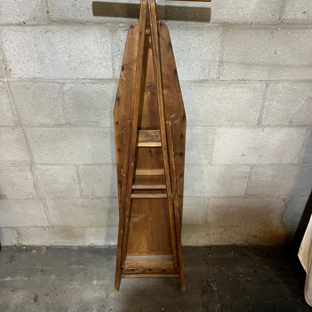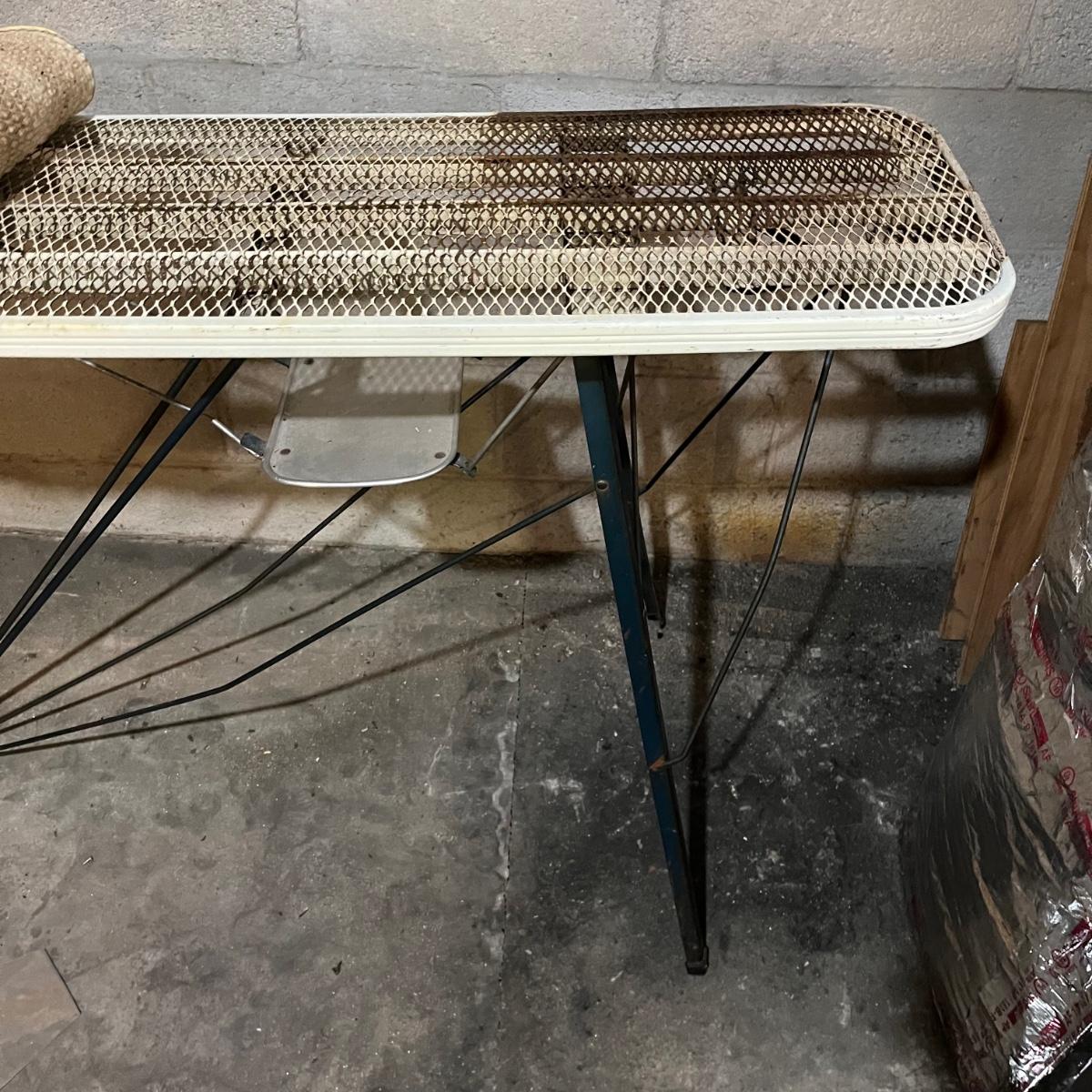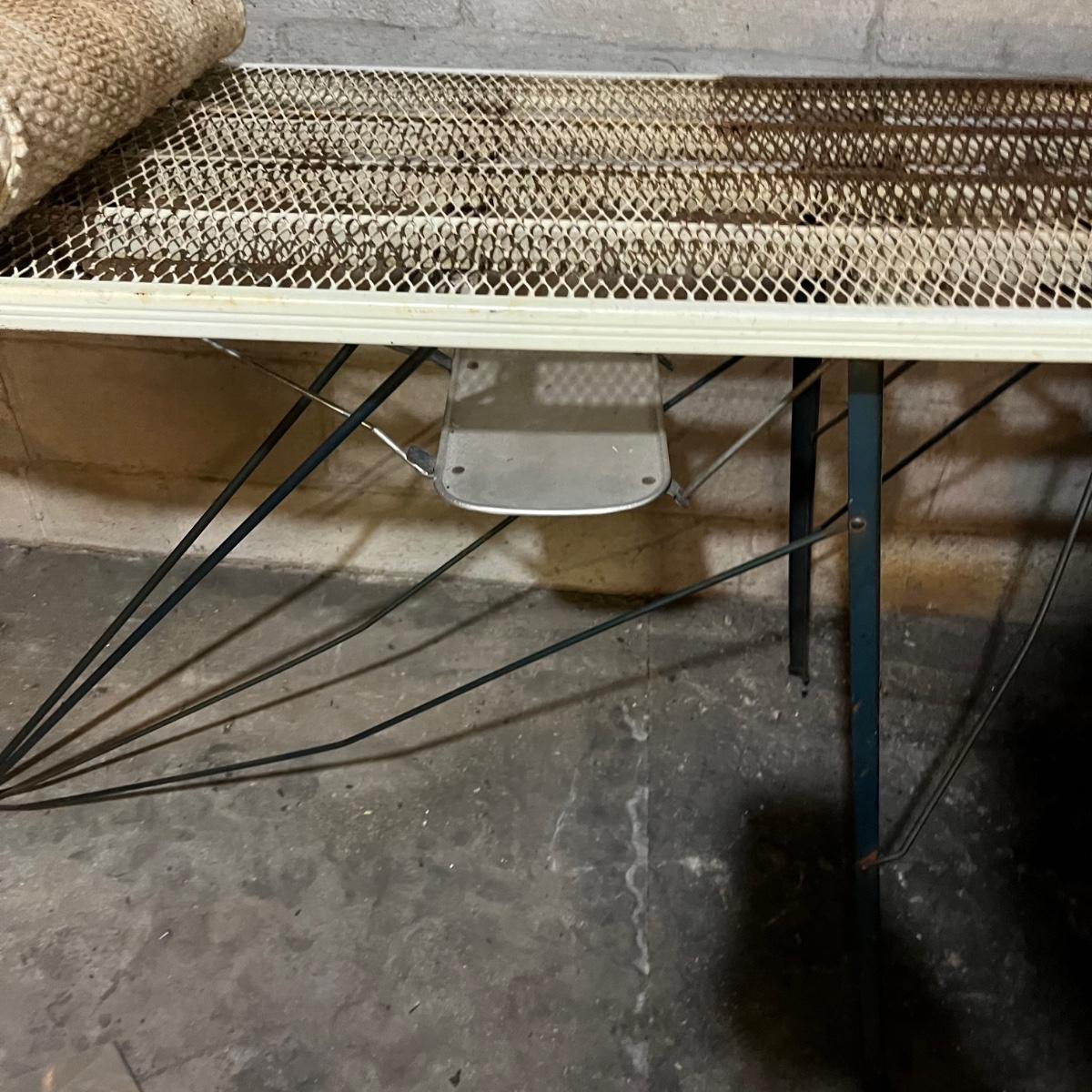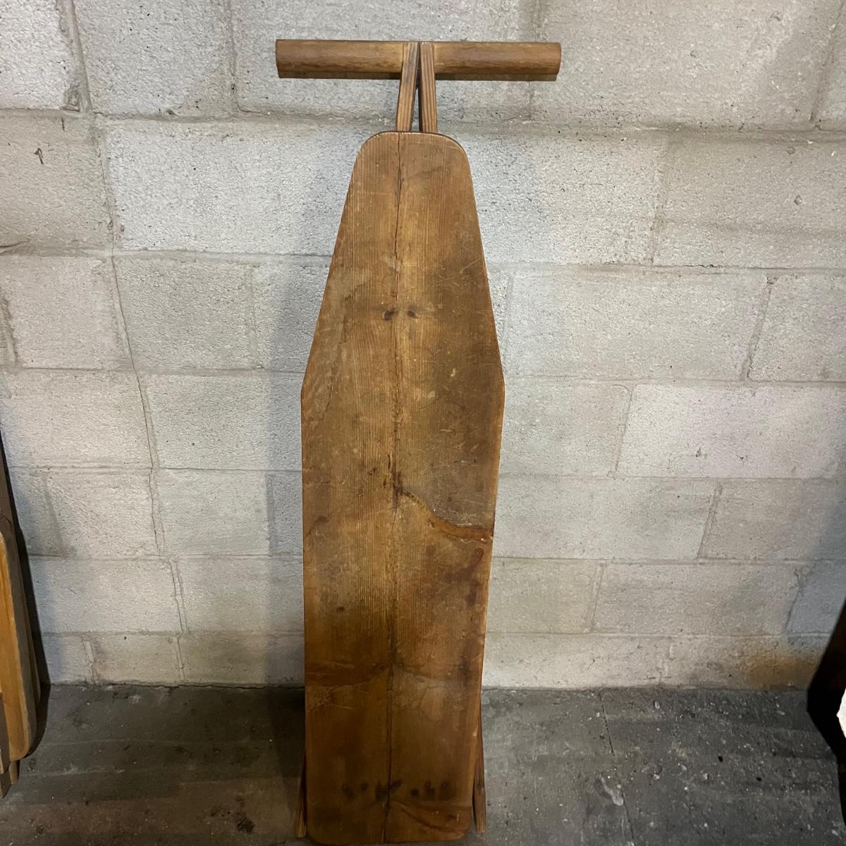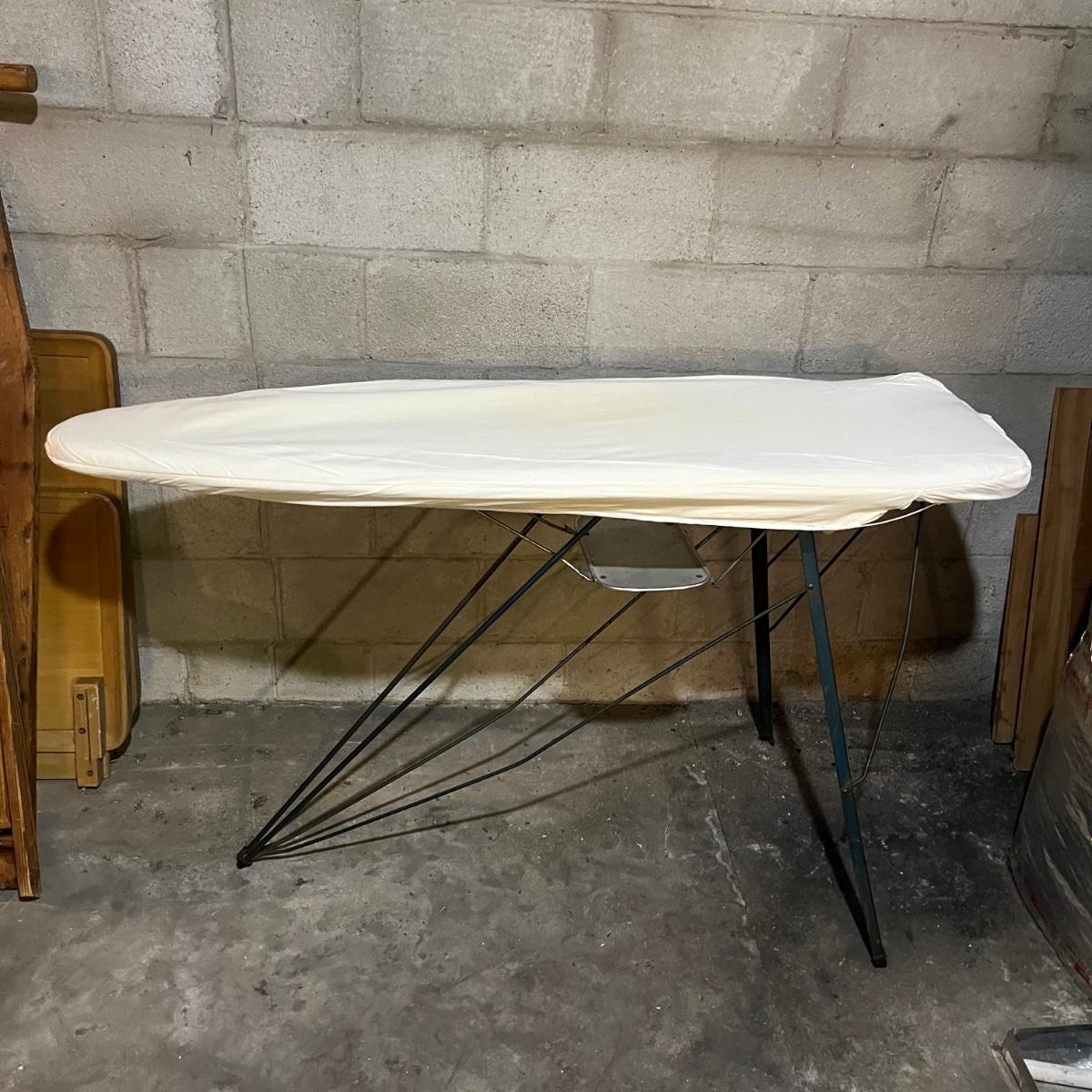 Lot contains one wooden ironing board and a heavy metal ironing board with cover. Metal board measures 14” x 55” x 33”.
