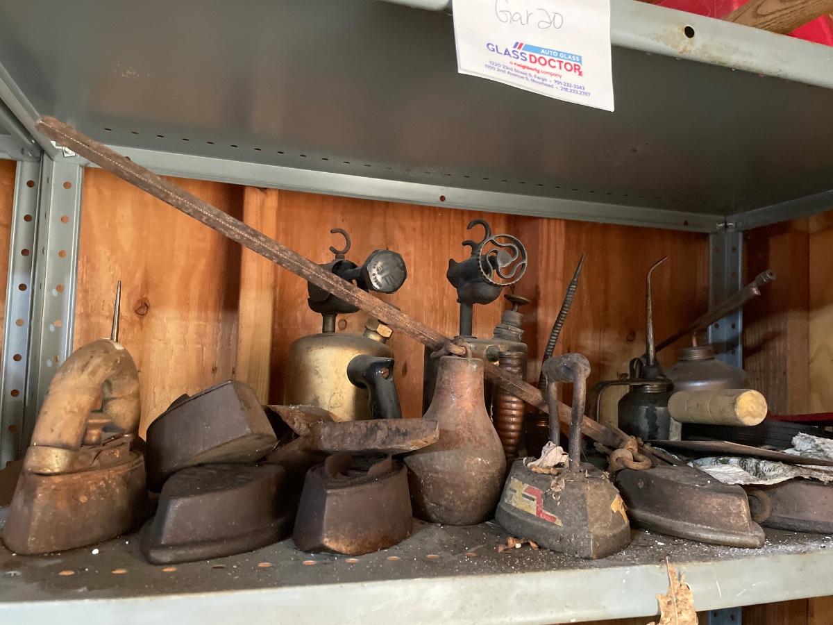 Vintage irons and oil cans