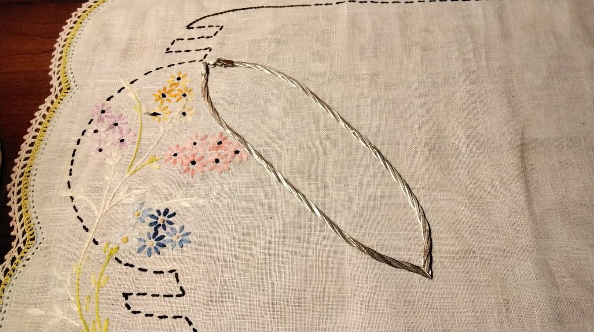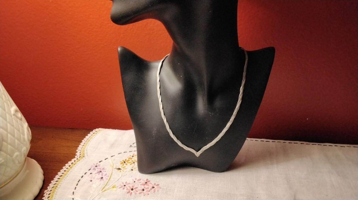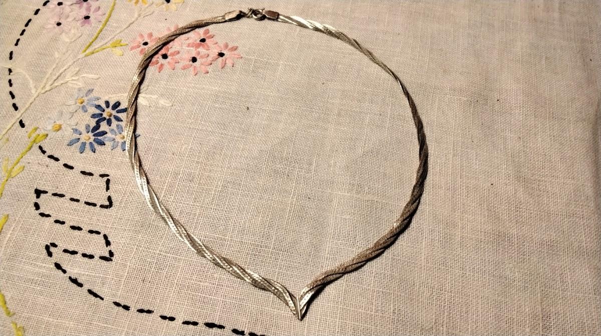Vintage Italian 16" 925 Braided Herringbone V Necklace