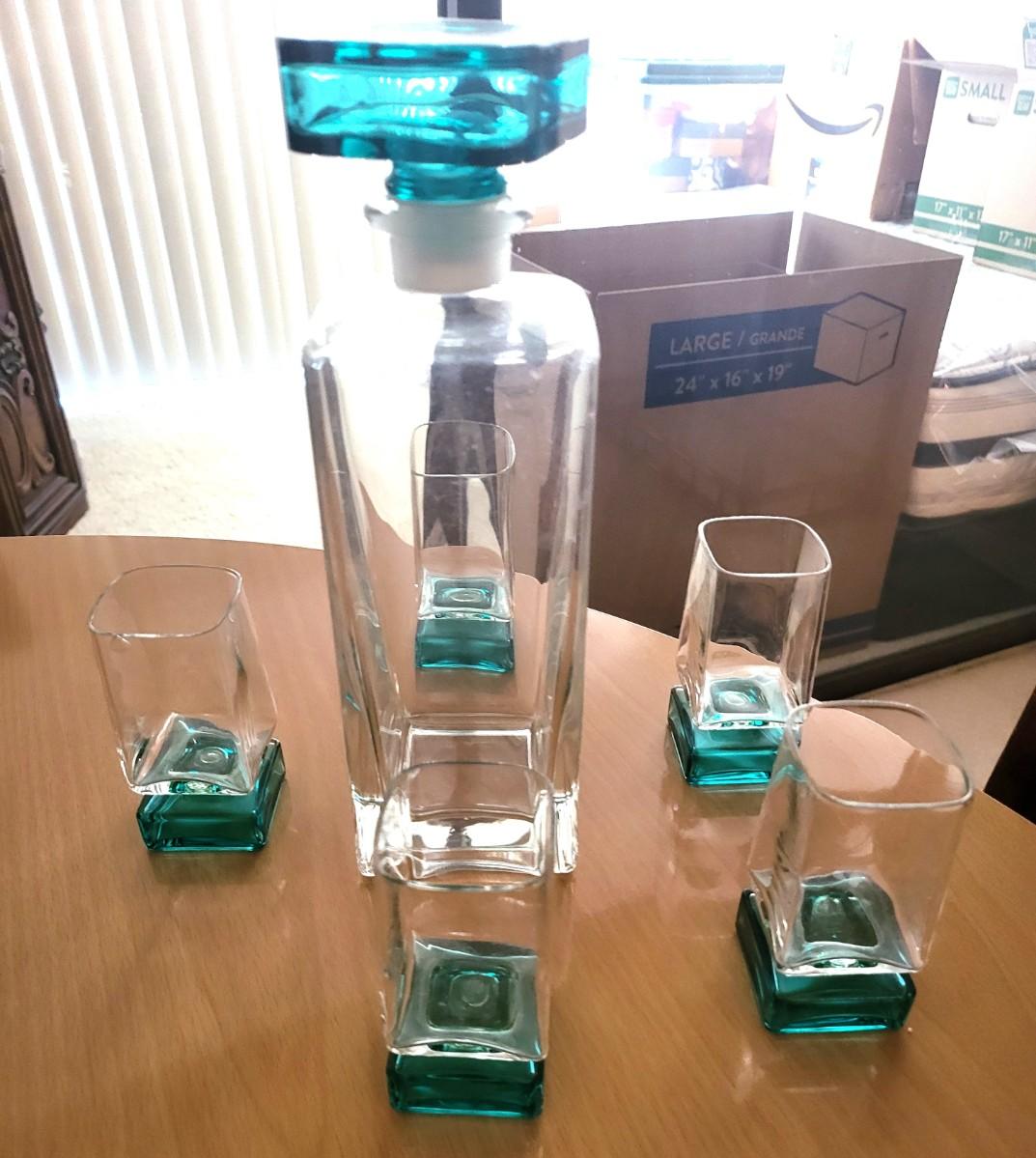 Vintage Italian Bormioli Monet Decanter with 5 Glasses