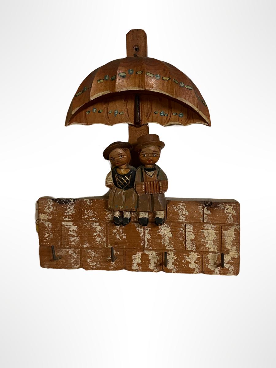 Vintage Italian Carved Wood Key Holder