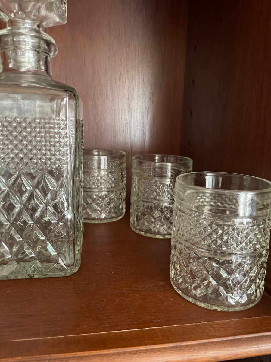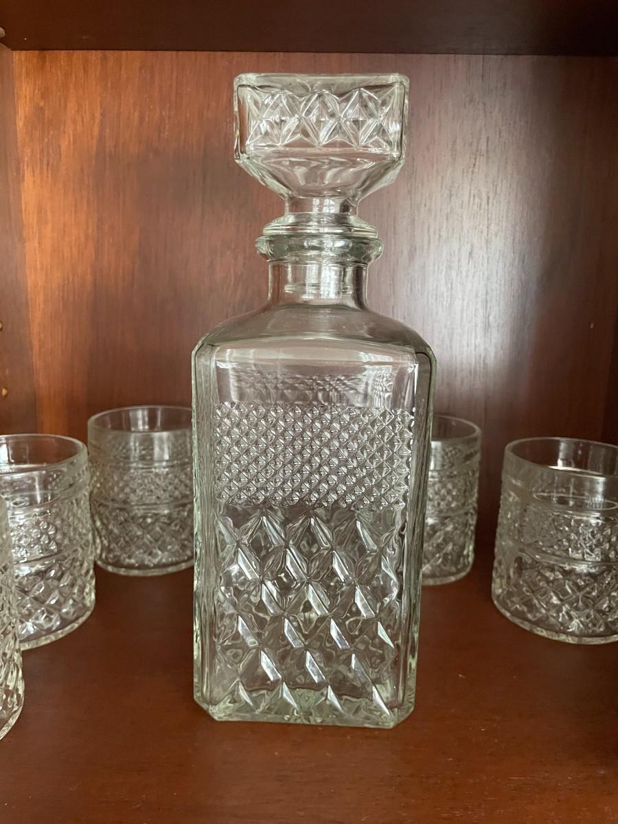 Vintage Italian  Glass Cut Whisky Decanter and Whiskey Glass Set