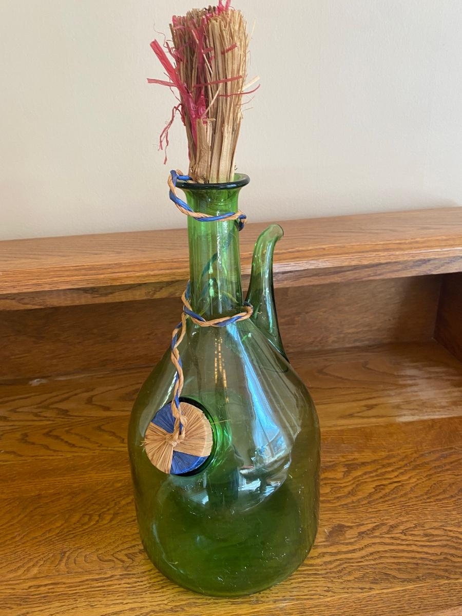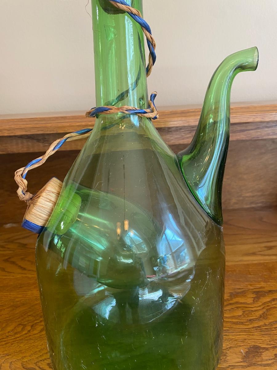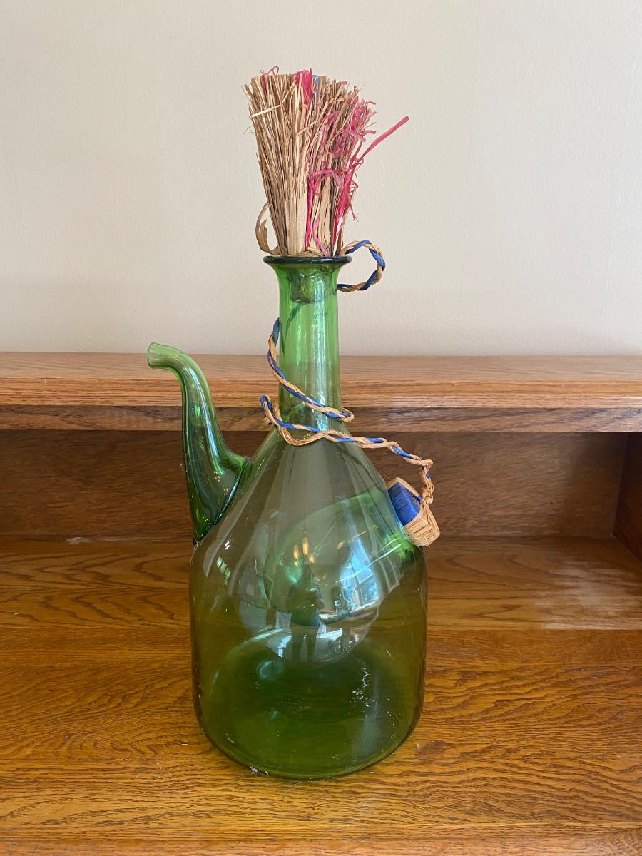 Vintage Italian green glass wine carafe with ice chamber. 12-1/2”h x 6-2/2”dia