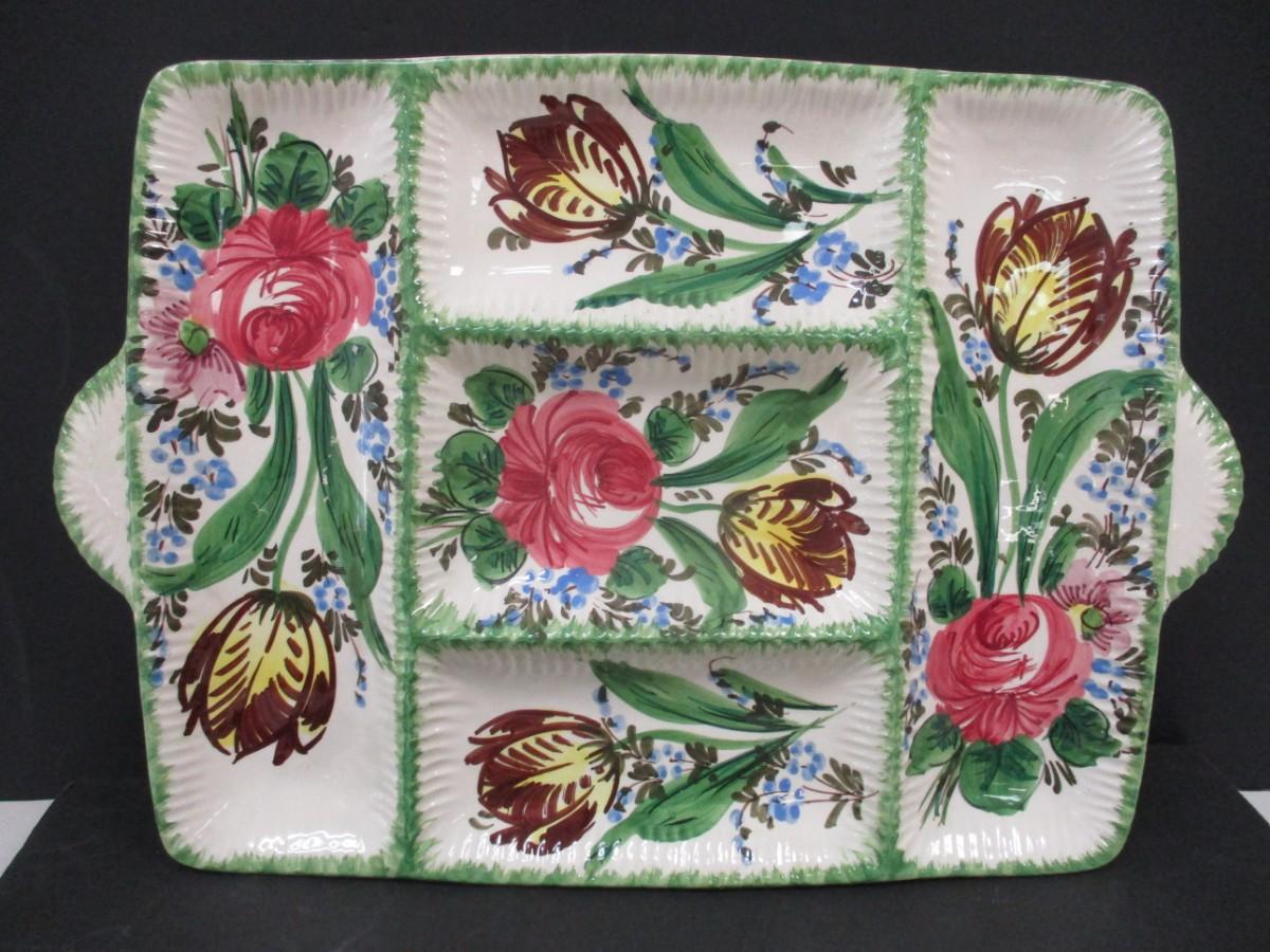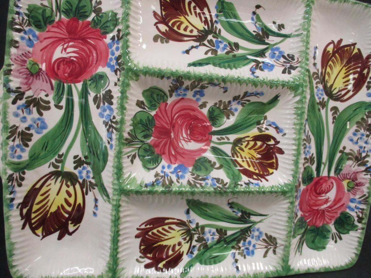 Vintage Italian Hand Painted Vegetable Platter Flower Design