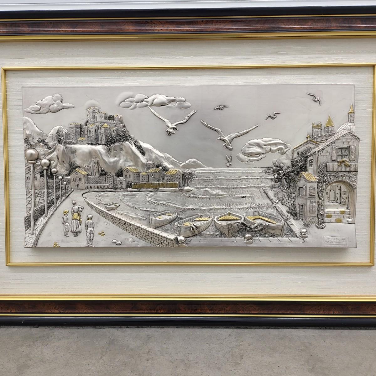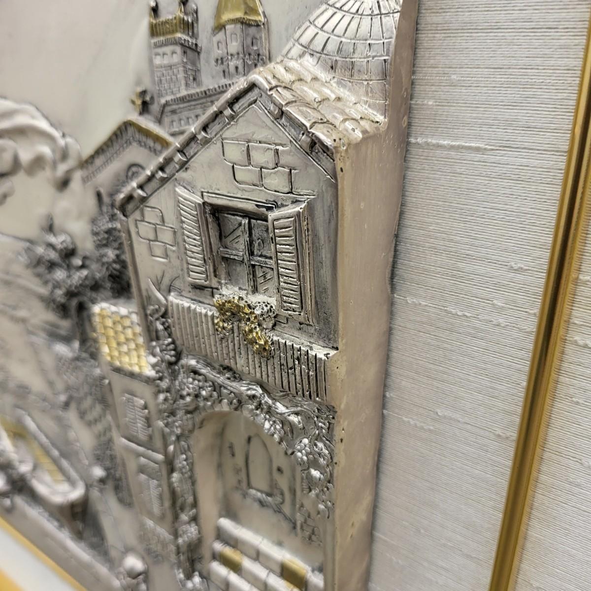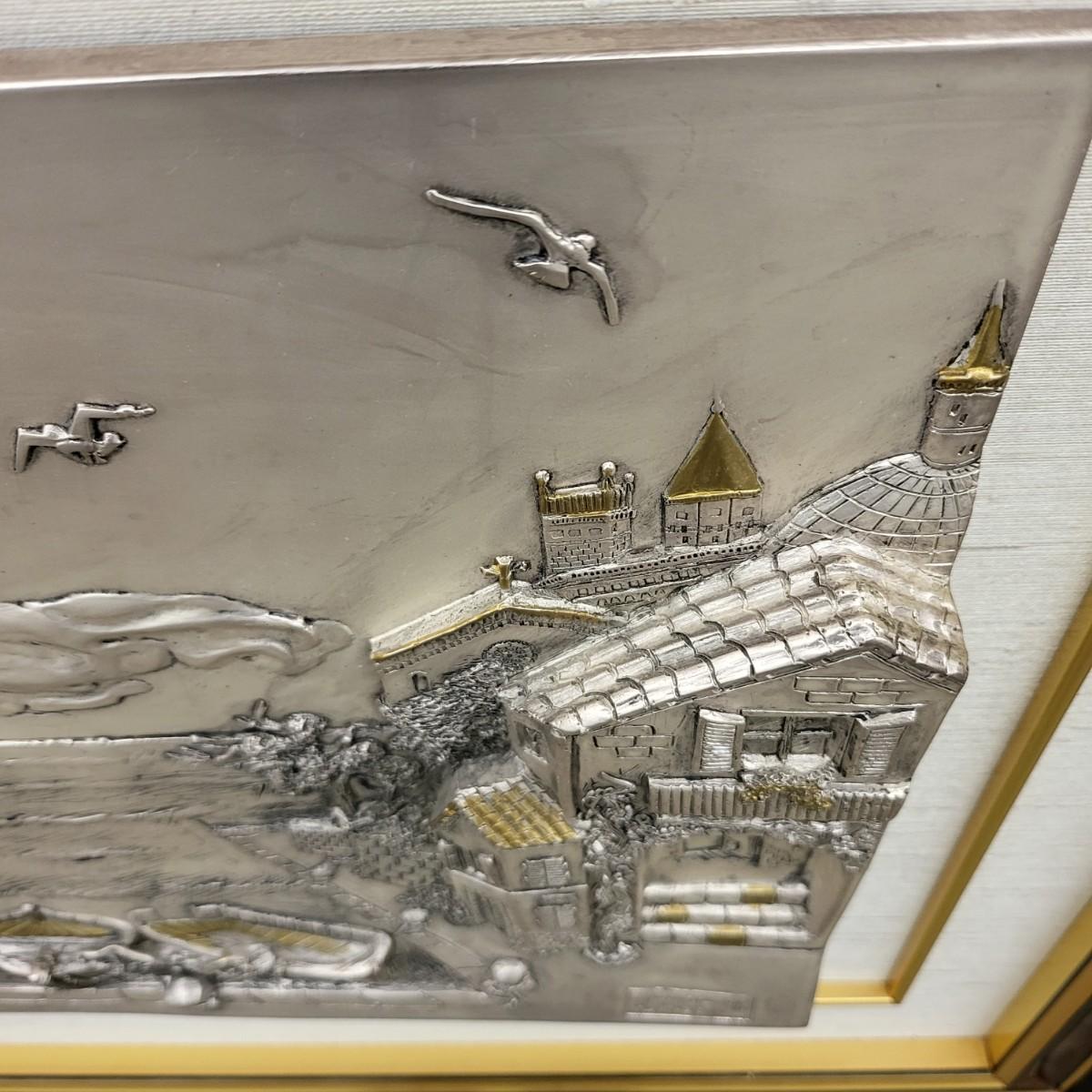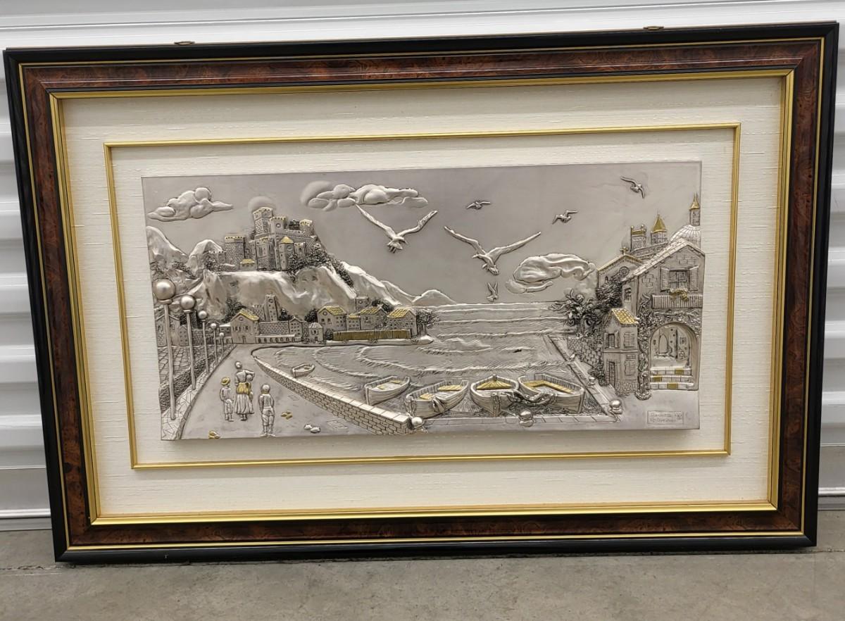 Vintage Italian framed art picture, raised/relief/3-D with 925 overlay and gold gilt accents. Measures 33" wide x 22" tall x 1" deep. Shipping not available on this item.