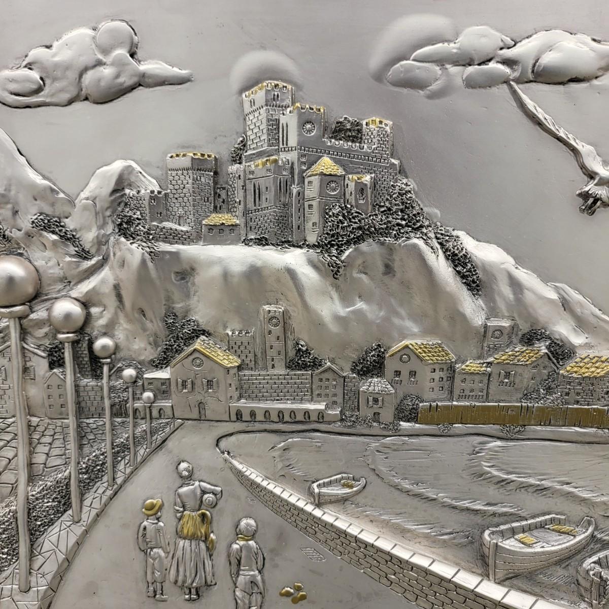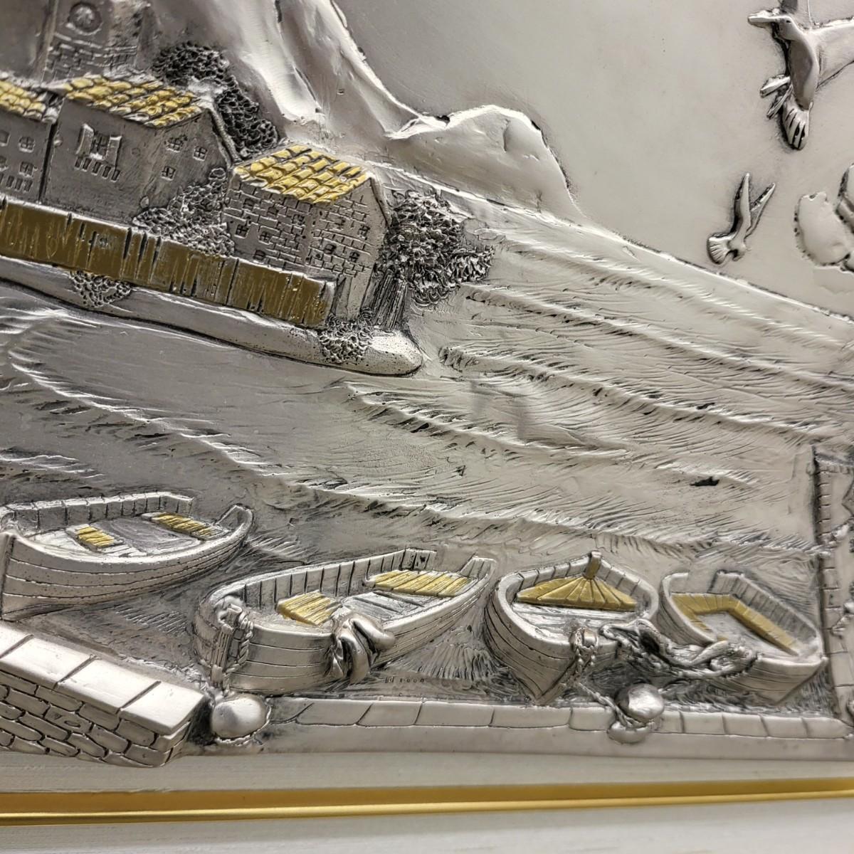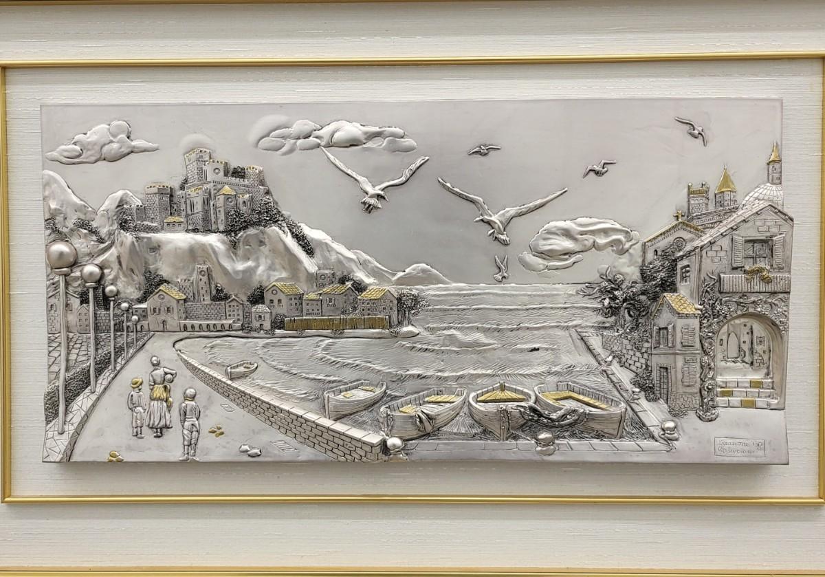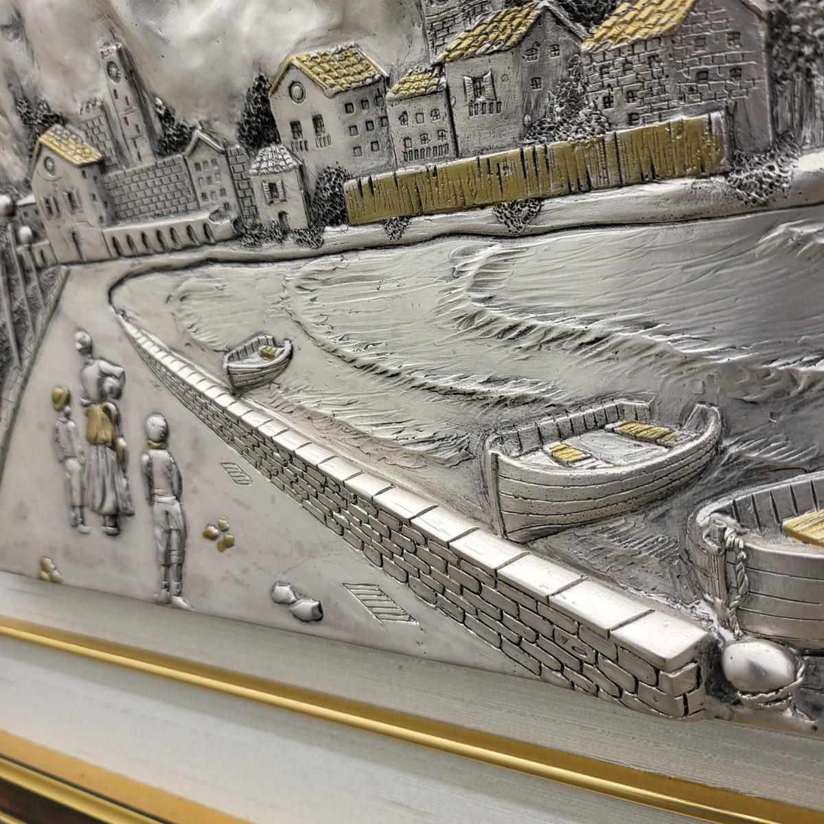 Vintage Italian framed art picture, raised/relief/3-D with 925 overlay and gold gilt accents. Measures 33" wide x 22" tall x 1" deep. Shipping not available on this item.