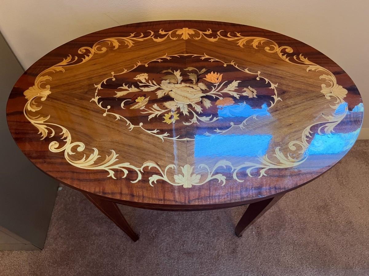 Vintage Italian Inlay Jewelry Table w/ Built-In Music Box