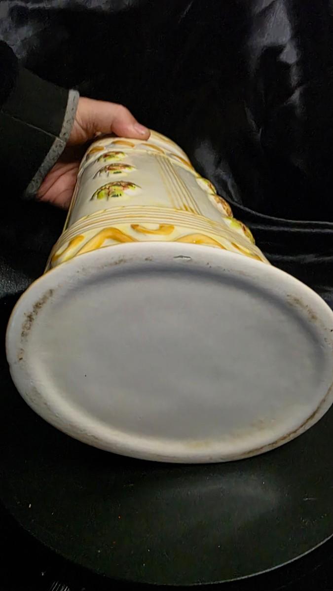 The interior is fully glazed and food-safe, and the exterior retains its hand-painted character with no chips, discoloration, or repairs. Pieces of this size and condition are uncommon, as most Majolica pasta jars are much shorter and less detailed. This example carries an air of Italian countryside charm — the kind of object once displayed proudly in a warm, open-kitchen villa, surrounded by copper pots, olive oil, and the smell of fresh herbs.
