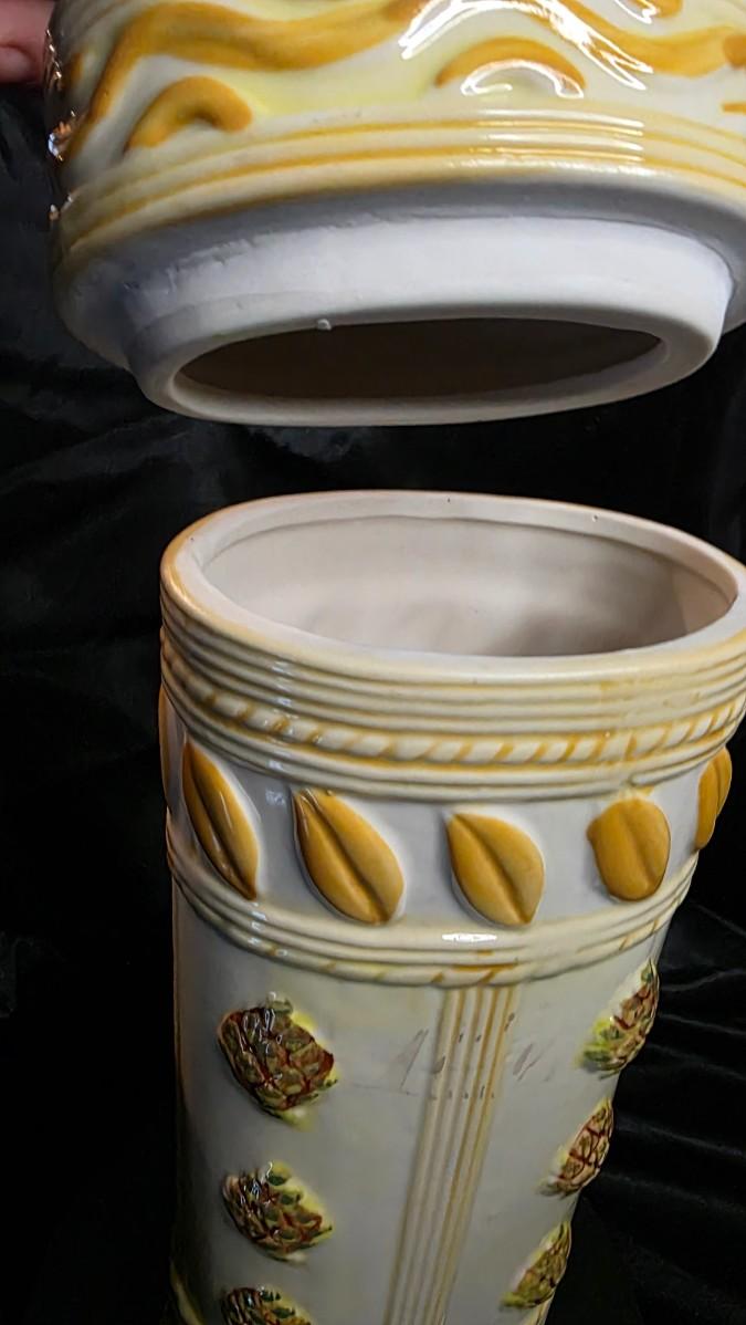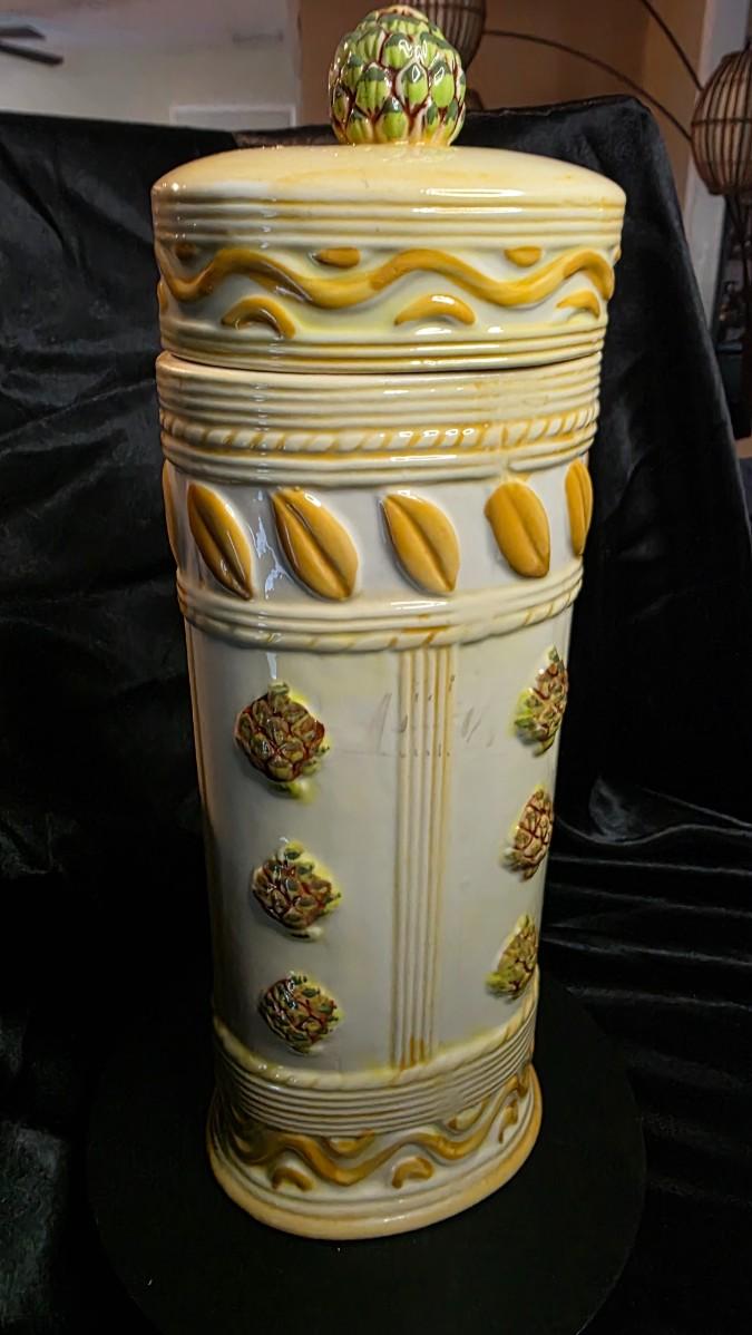 Vintage Italian Majolica Oval Pasta Canister with Artichoke Lid – Hand-Painted Ceramic Storage Jar, 15”