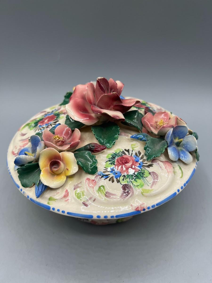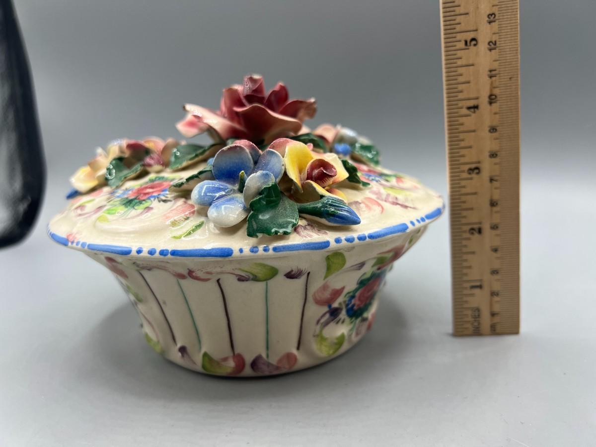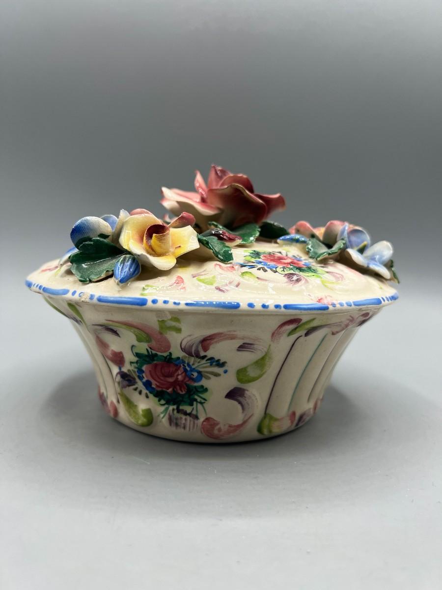 Vintage Italian Porcelain Ceramic Colorful Flowers Handmade Lidded Trinket Storage Bowl Dish