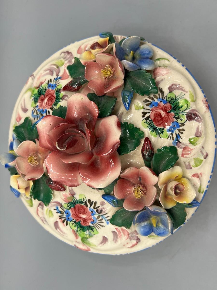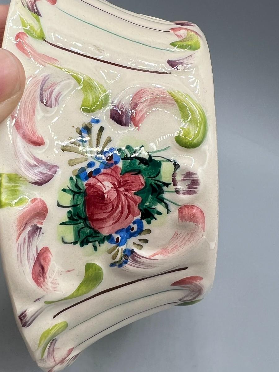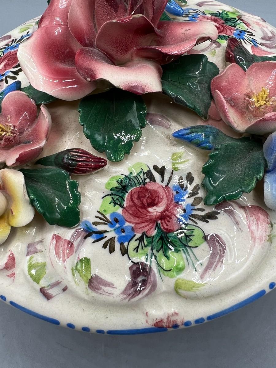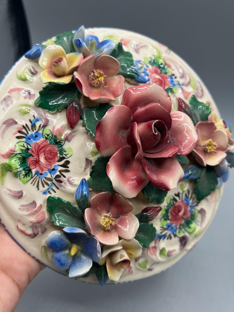 Vintage Italian Porcelain Ceramic Colorful Flowers Handmade Lidded Trinket Storage Bowl Dish