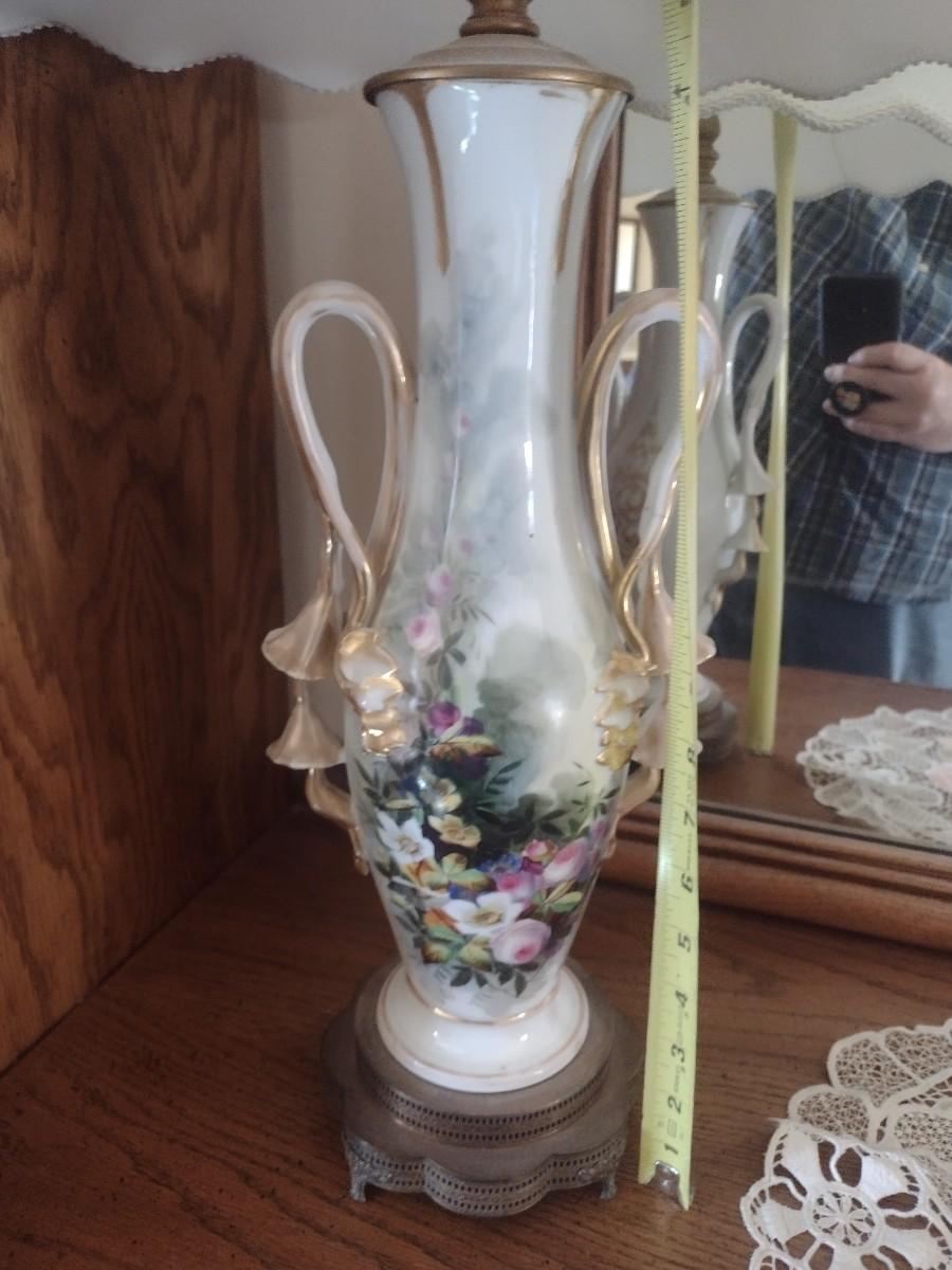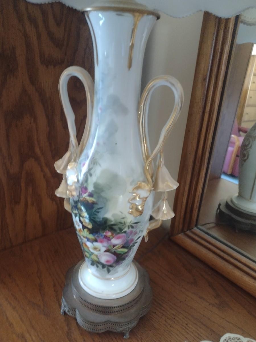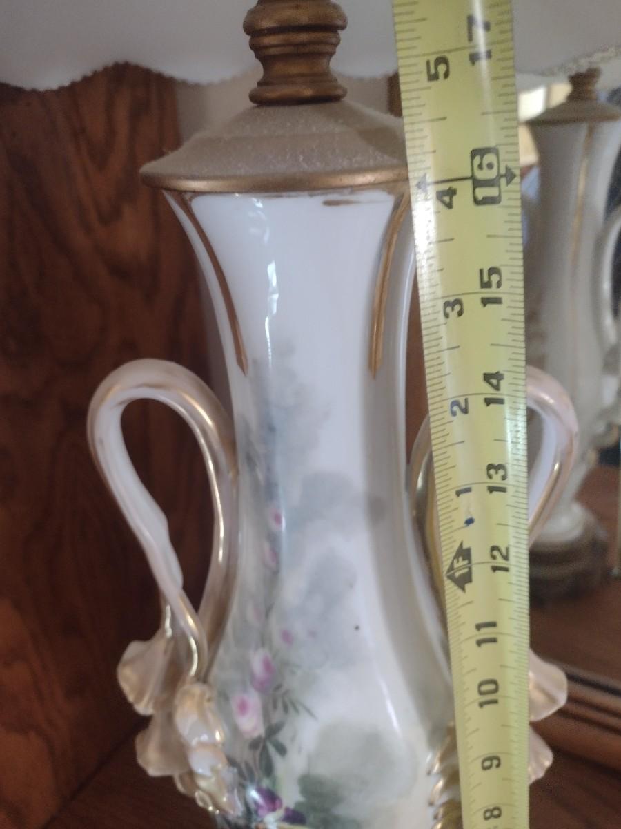 Vintage Italian Porcelain Hand Painted Vase Post Table Lamp with Shade