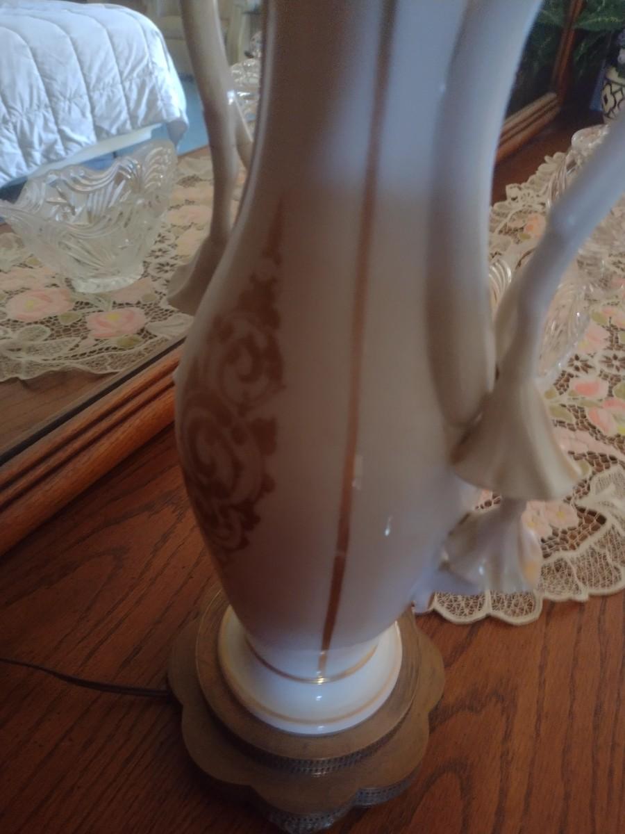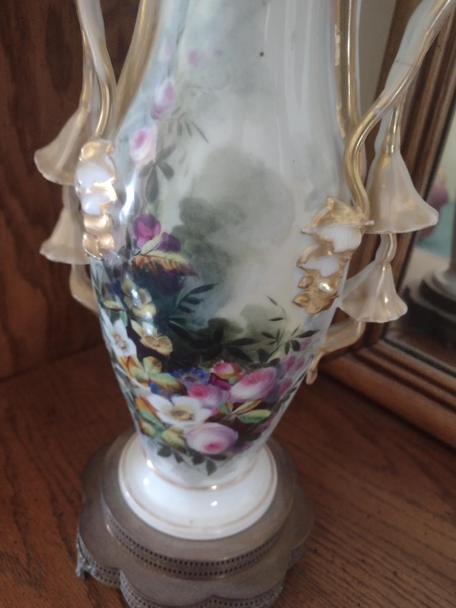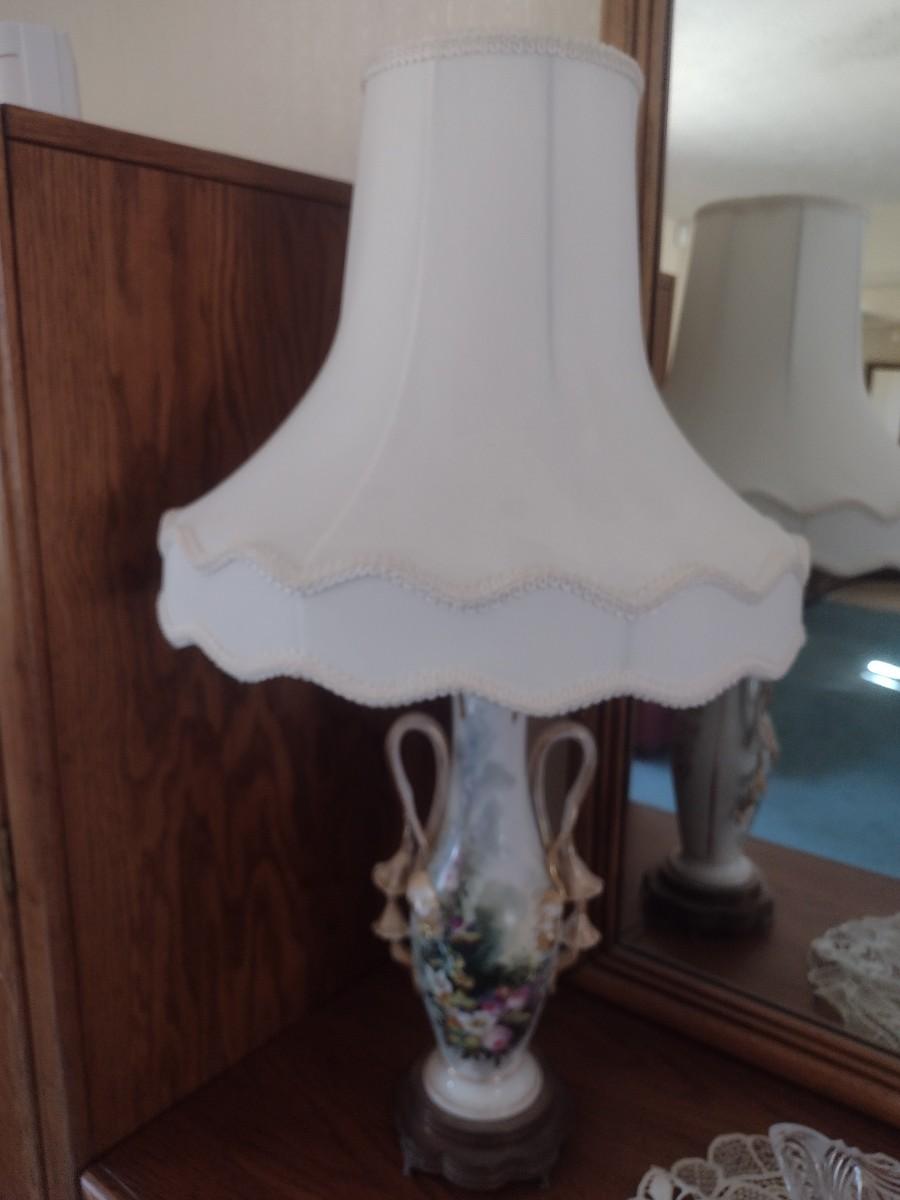 Vintage Italian Porcelain Hand Painted Vase Post Table Lamp with Shade