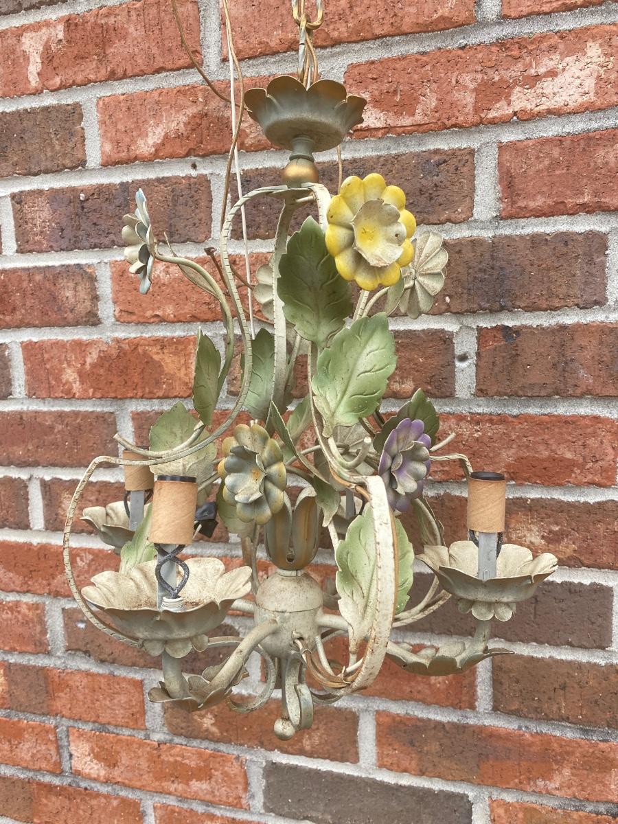 Pretty vintage tole Italian hanging light fixture as pictured approx 16” tall
